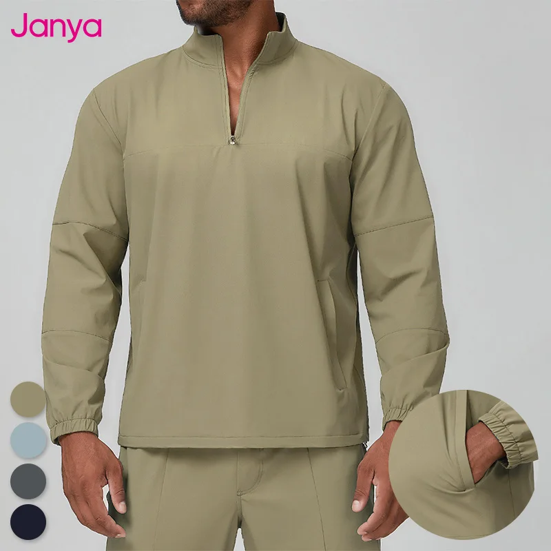 Janya Men's Comfortable Soft Shell Sports T-shirts Breathable Windproof Half Zip Pullover Sweatshirt for Outdoor Fitness Gym Top