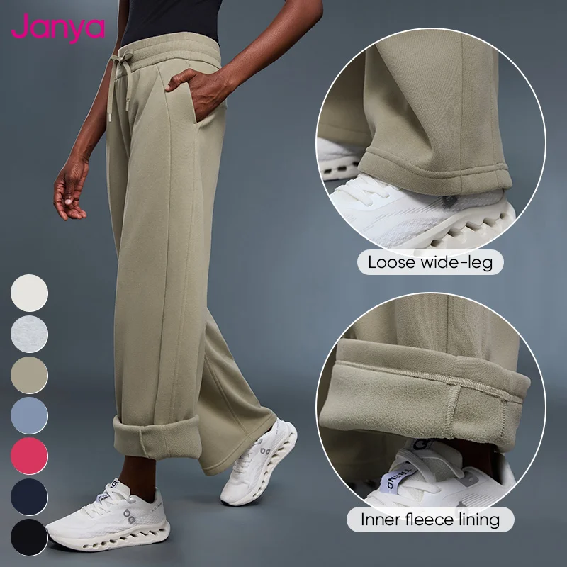 Janya Women's Thickened Warm Jogger Trousers Loose Casual Straight Wide Leg Sweatpants Drawstring High Waist Fleece Sports Pants