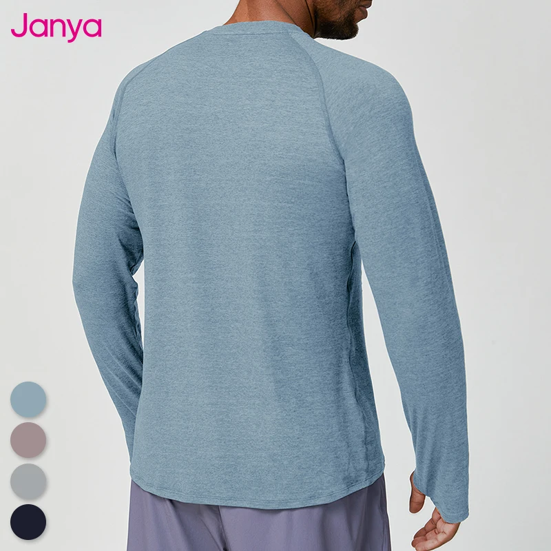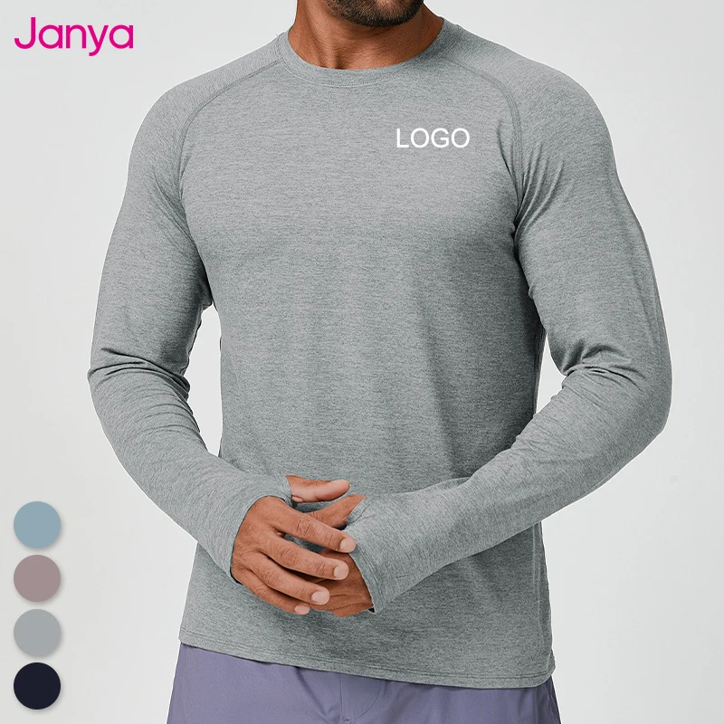 Janya Quick Dry Skin Friendly Men's Outdoor Training Long Sleeve Elastic Running Shirt Oversized Sportswear Gym T-shirt