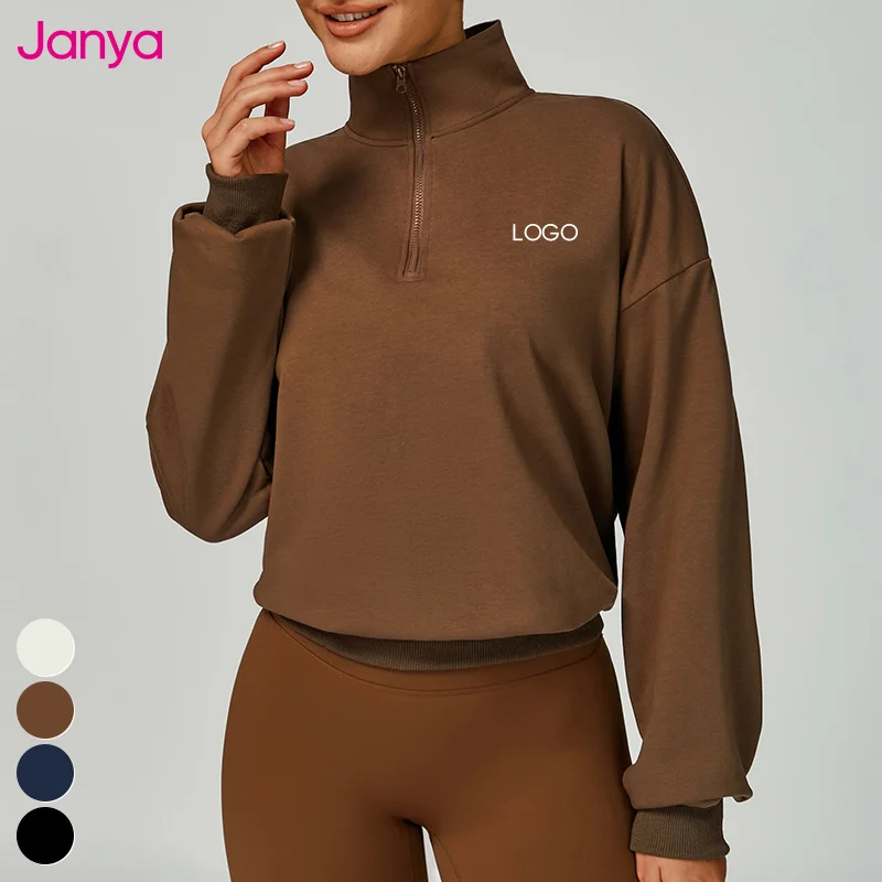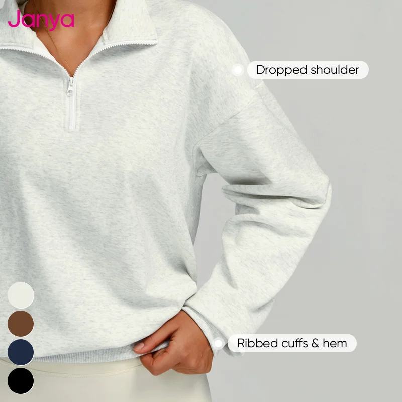 Janya Hot Selling Custom Women Clothing Half Zipper Sweatshirt Sports Fitness Top Stand Collar Casual Warm Pullover Sweatshirt