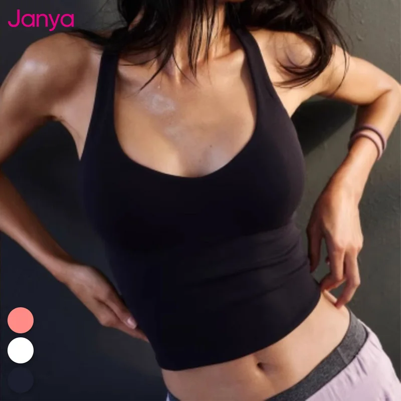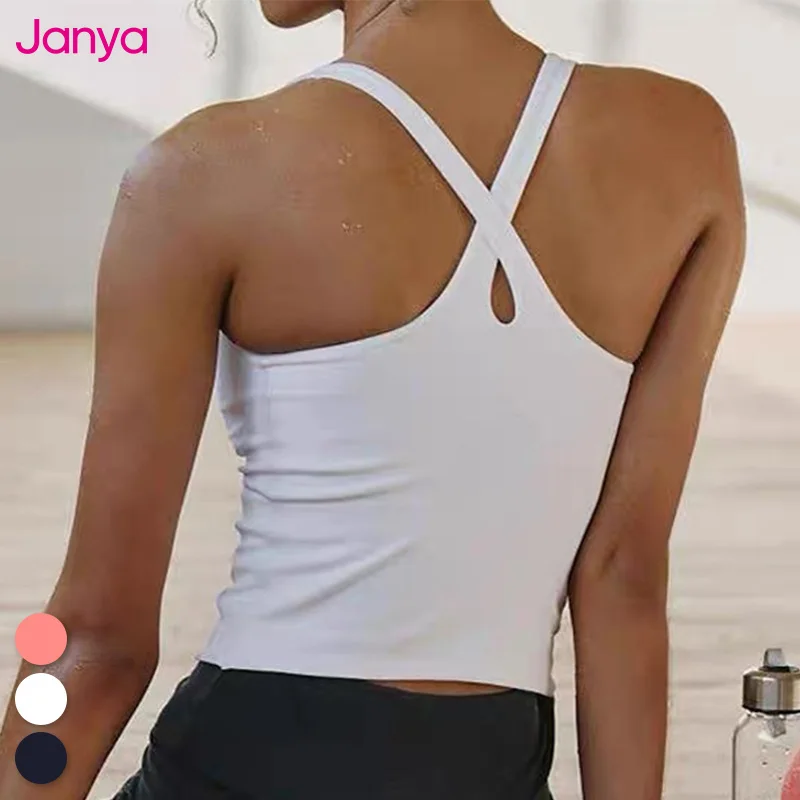 Janya 2026 New Women Running Vest Cross Back Tank Quick Dry Sleeveless Sports Crop Top Breathable Fitness Training Gym Tank Top