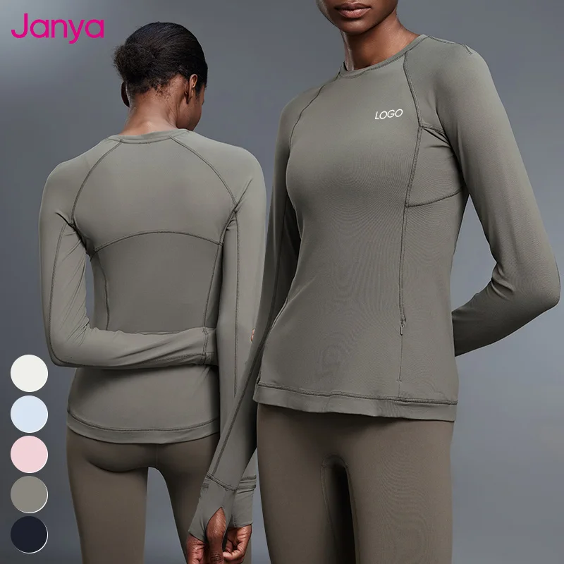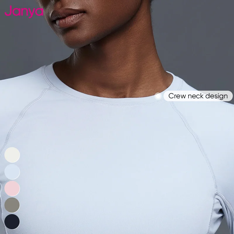 Janya Breathable Elastic Tight Gym Sports Shirt Custom Logo Activewear Comfort Women's Crew Neck Long Sleeve Fitness Yoga Top