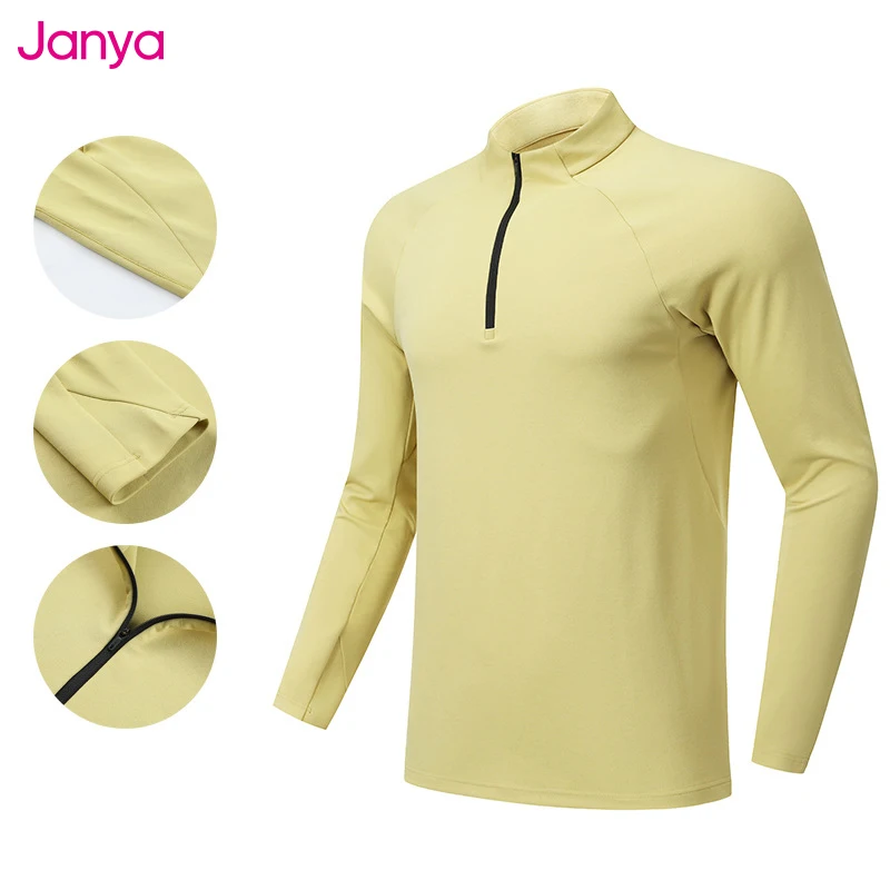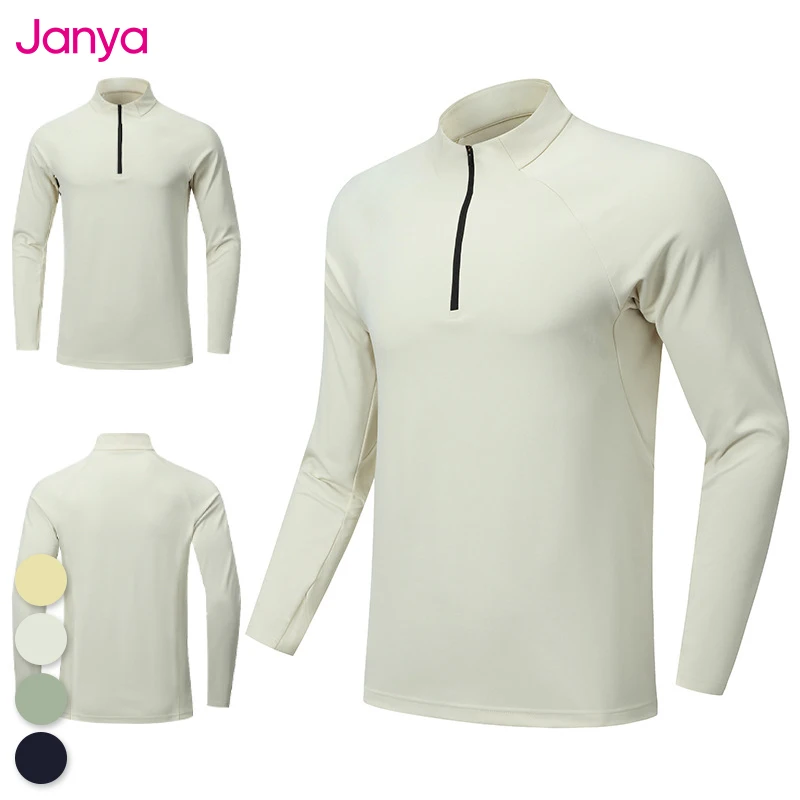 Janya Breathable Soft Jersey Half Zip Active Top for Men Quick Dry Solid Color Slim Fit Running Muscle Tee Long Sleeve Shirts