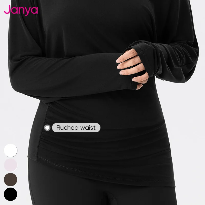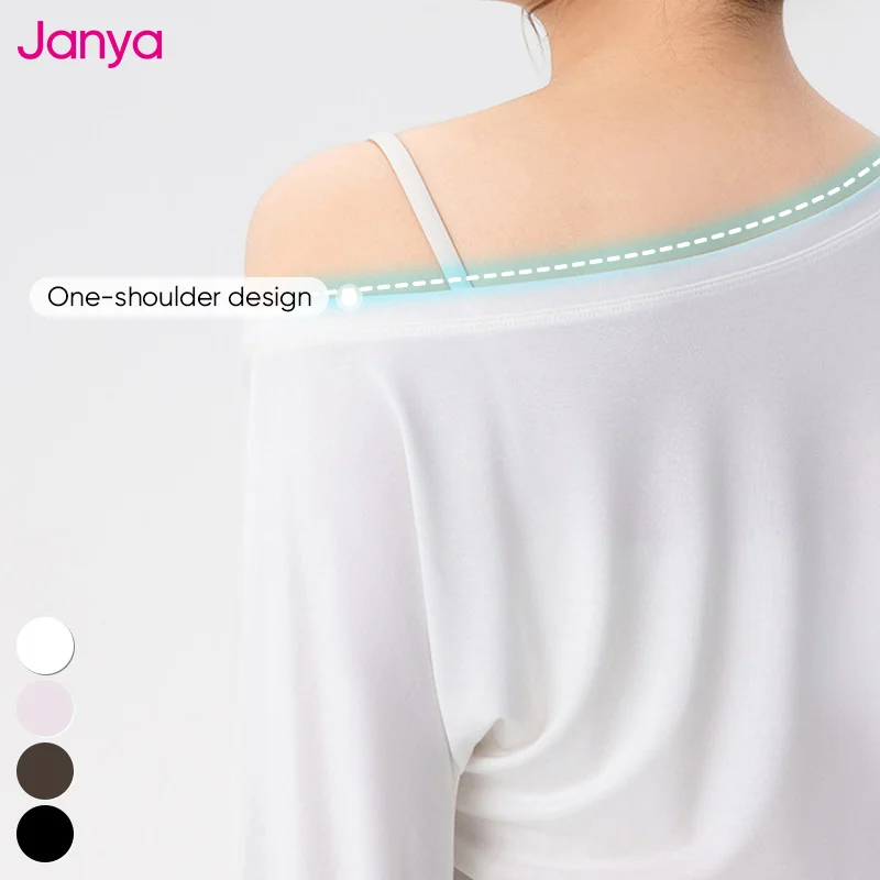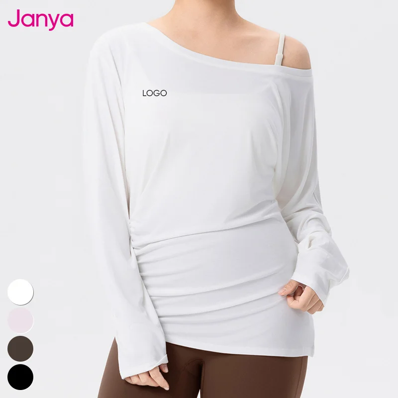 Janya Plus Size Fitness Clothing Loose Breathable Casual Sports Blouse Off-the-Shoulder Long Sleeve Yoga T-shirt Top for Women