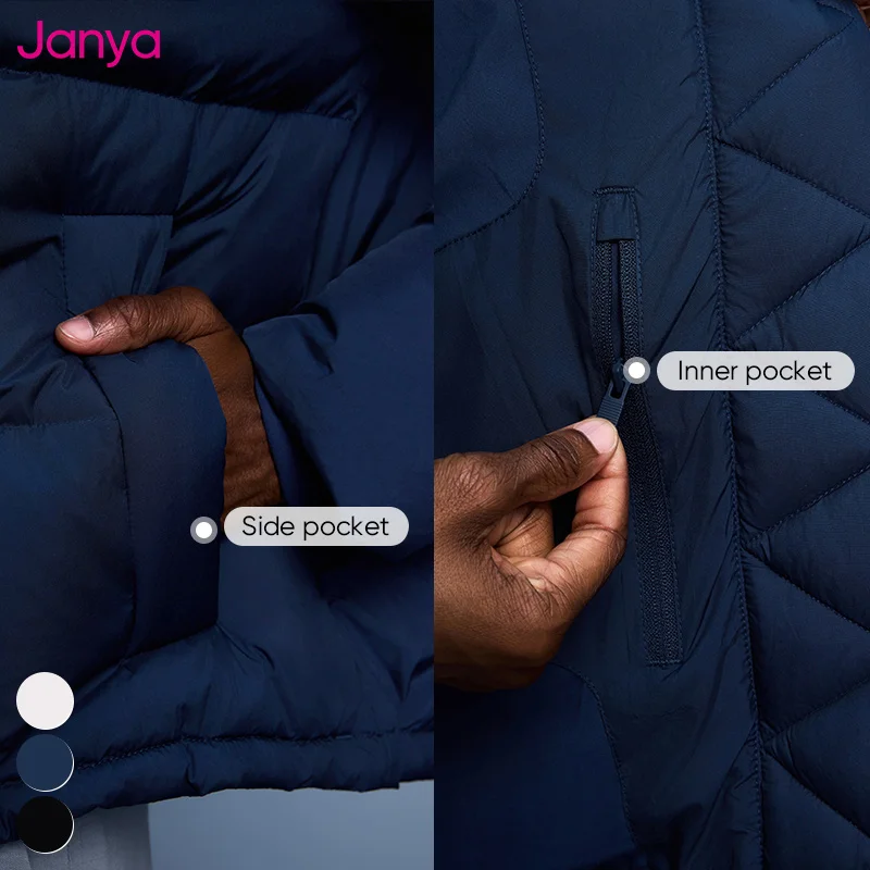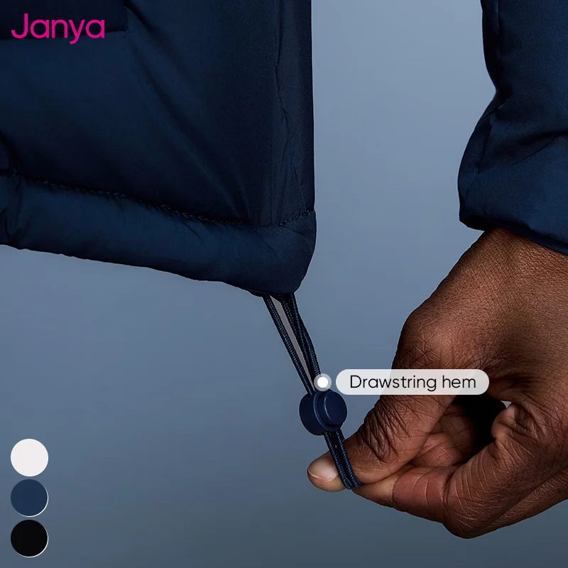 Janya New Winter 90% White Duck Sports Yoga Jackets Detachable Hood Thick Warm Drawstring Hem Waterproof Puffer Jacket for Women