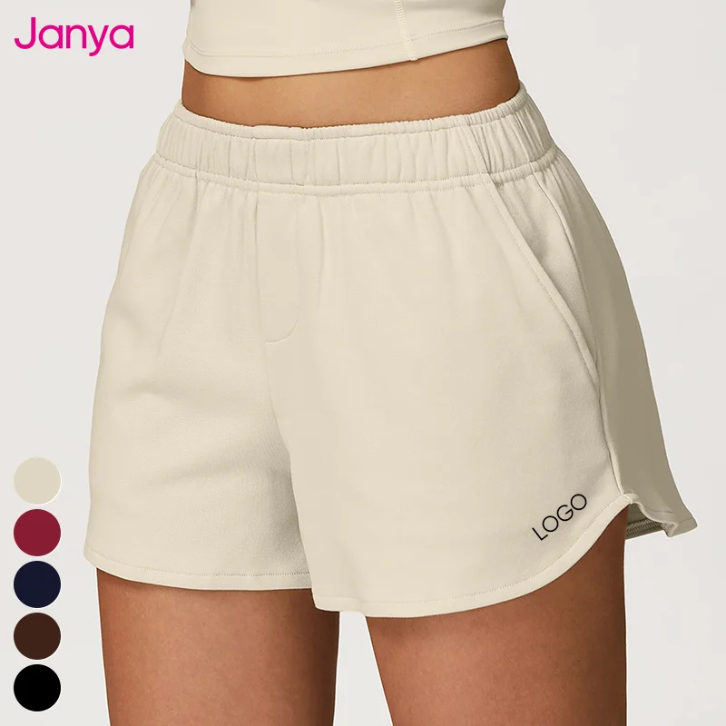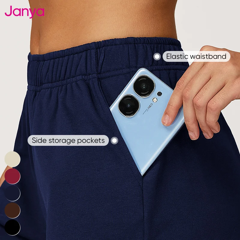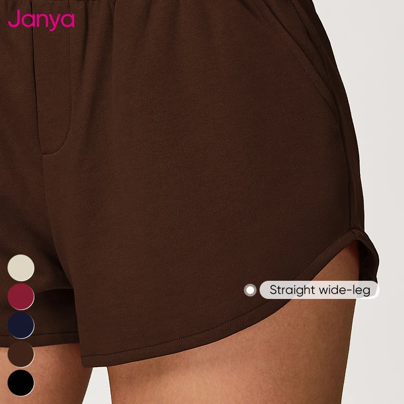 Janya Casual Workout Sportswear Loose Wide Leg Straight Sweat Lounge Shorts Autumn Elastic High Waist Jogger Shorts for Women