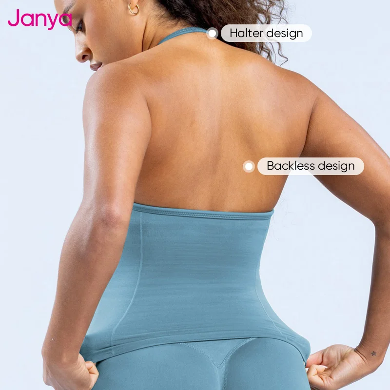 Janya Womens Halter Neck Backless Sports Bra High Waist Butt Lifting Workout Leggings 2 Piece Set Seamless Yoga Gym Fitness Sets
