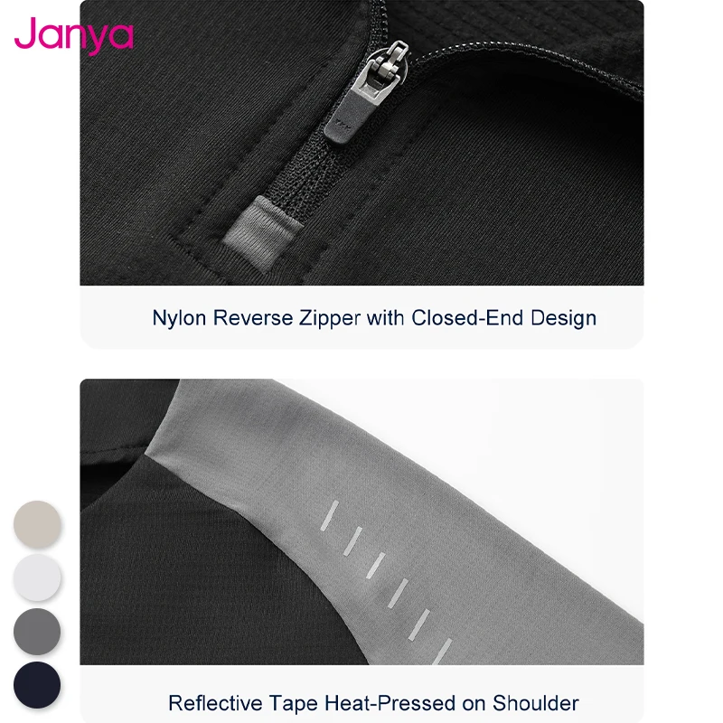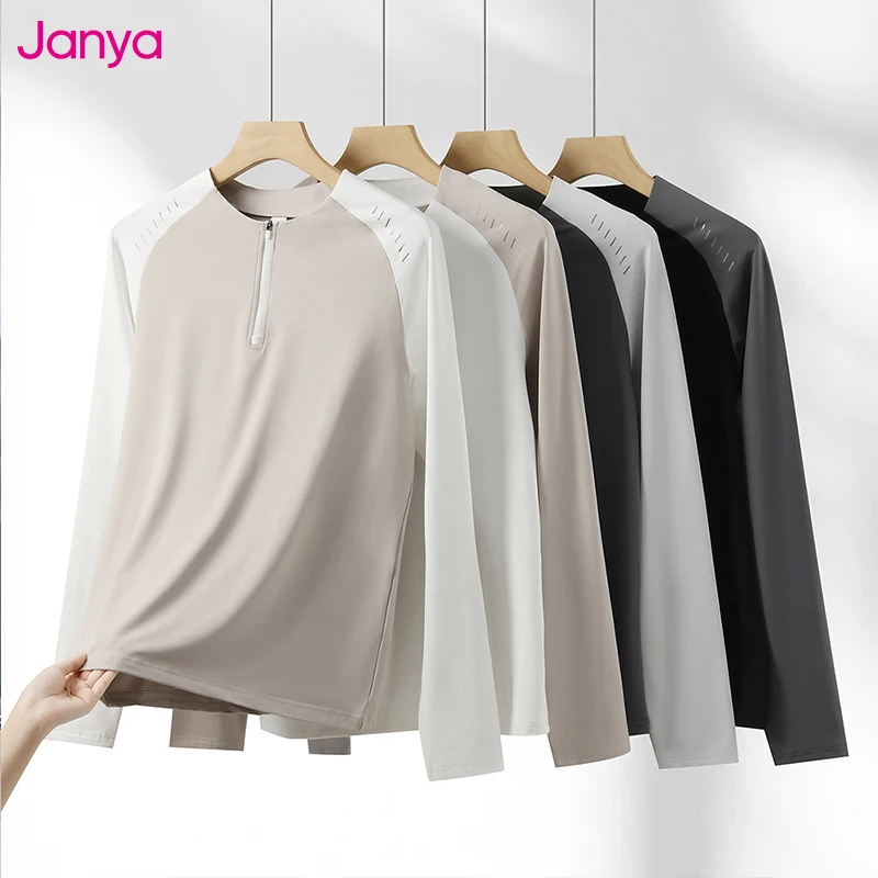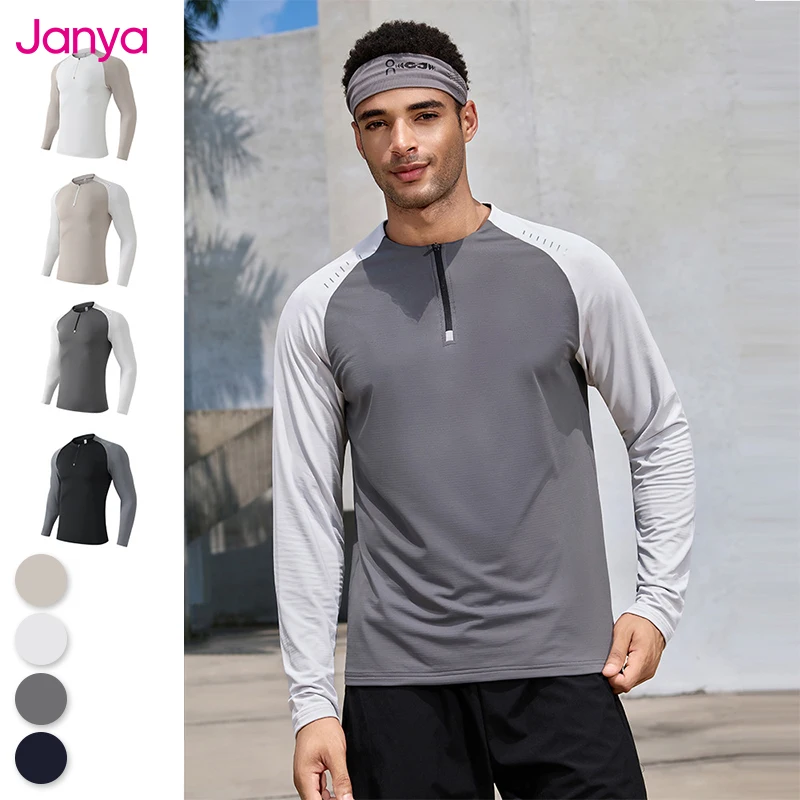 Janya Unisex Long Sleeve T-Shirt Blank Outdoor Streetwear Casual Fitness Gym Contrast Color Active Top for Men Soft Half Zip