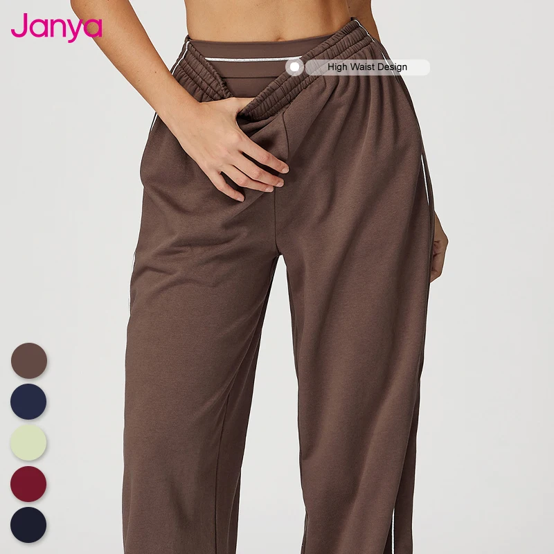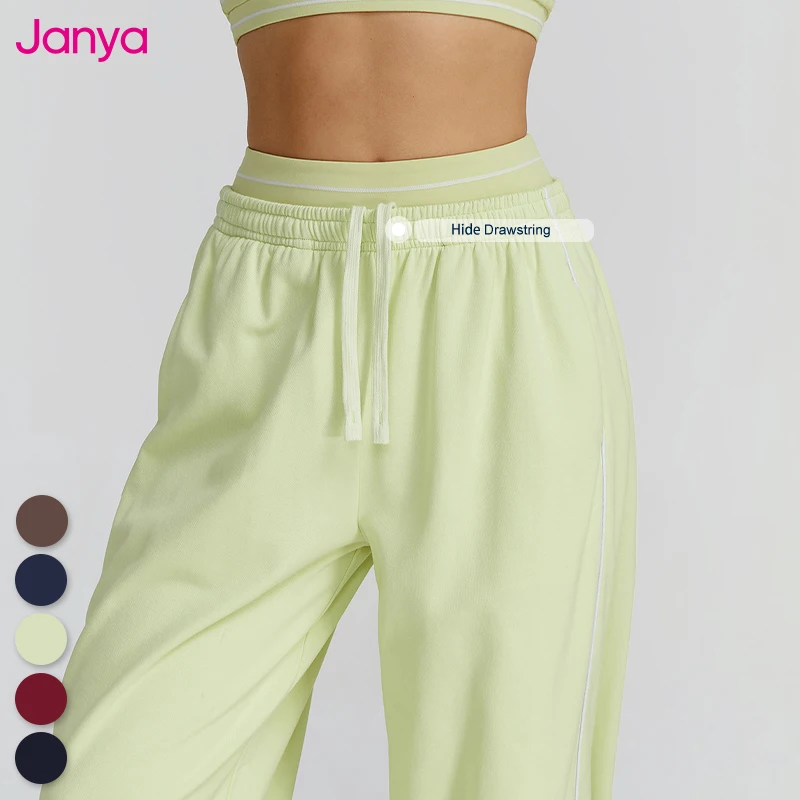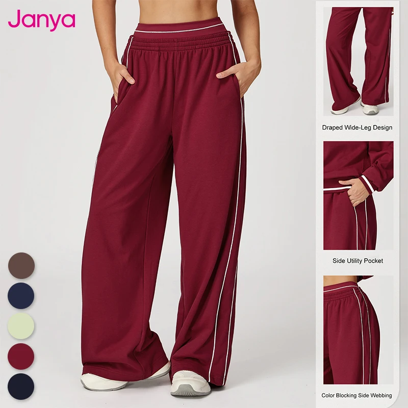 Janya Women Color Blocking High Waist Casual Straight Pants Loose Fit Breathable Trousers With Pockets Outdoor Gym Training Wear