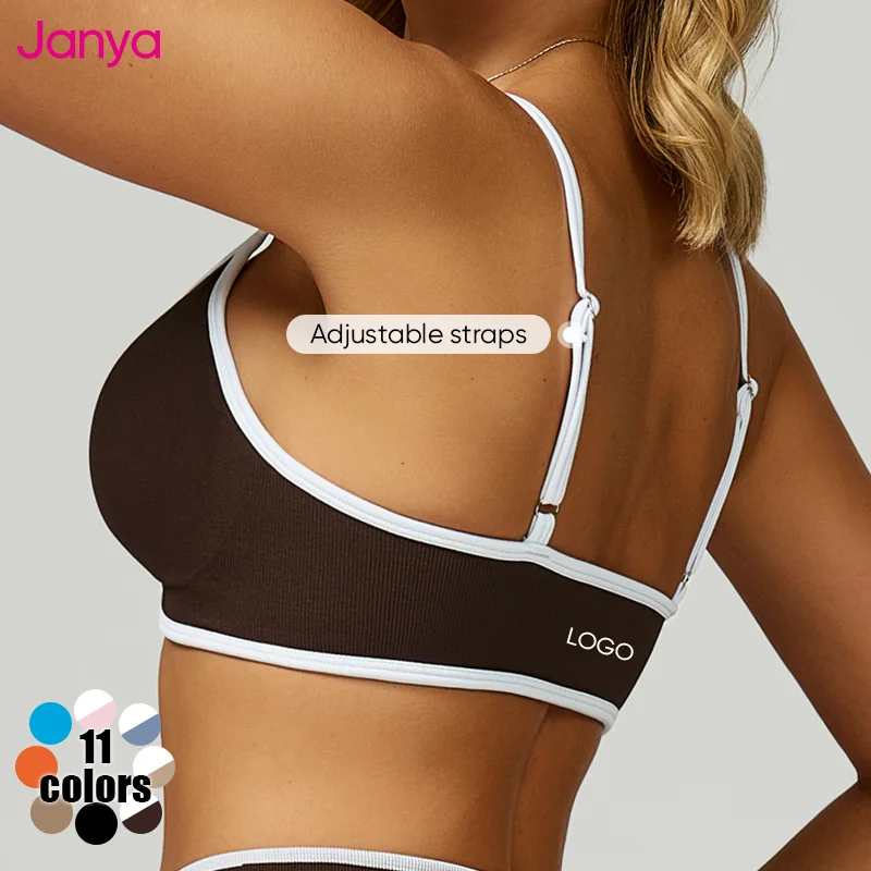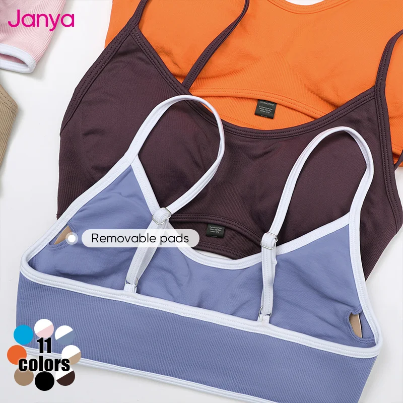 Janya Women's Lightweight Comfortable Fitness Bra Push up Adjustable Hollow Beauty Back Color Blocking Seamless Yoga Sports Bras