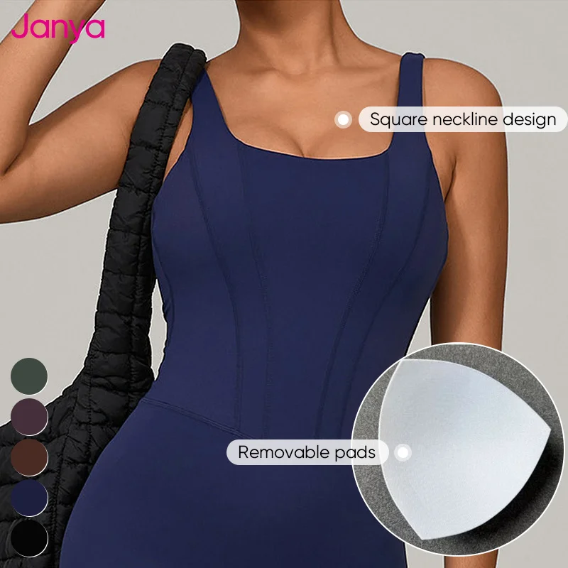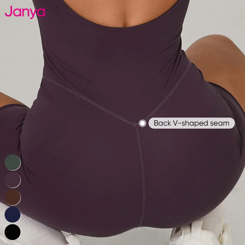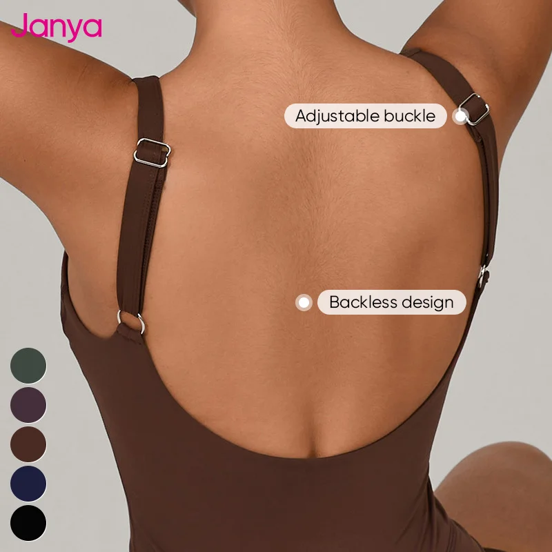 Janya Breathable Four-Way Stretch Quick Dry Nude Backless Sports Jumpsuits Adjustable Straps Sleeveless One Piece Yoga Jumpsuits