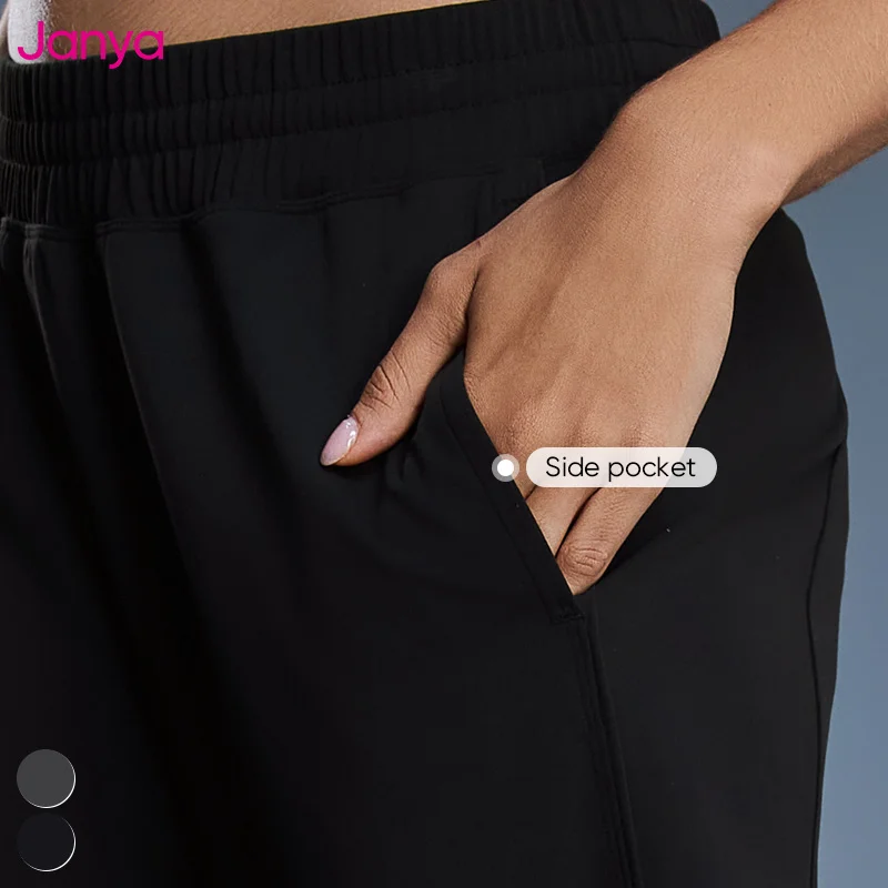 Janya Loose Hidden Drawstring High Waist Quick Dry Breathable Solid Jogger Track Pants Casual Running Sports Pants with Zip Legs