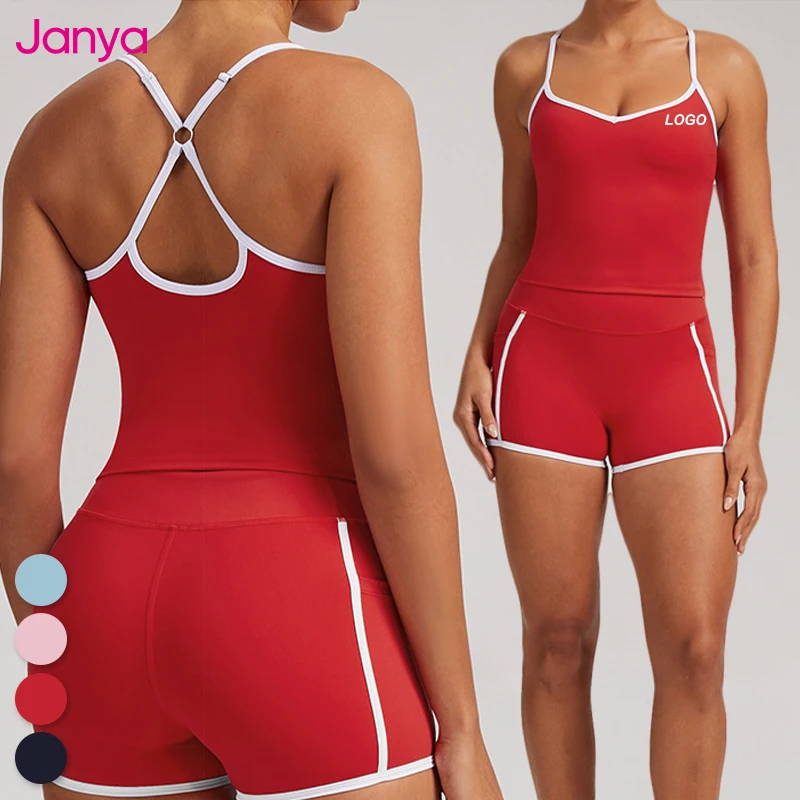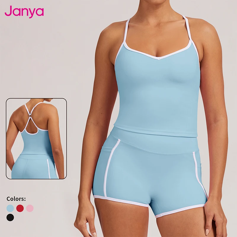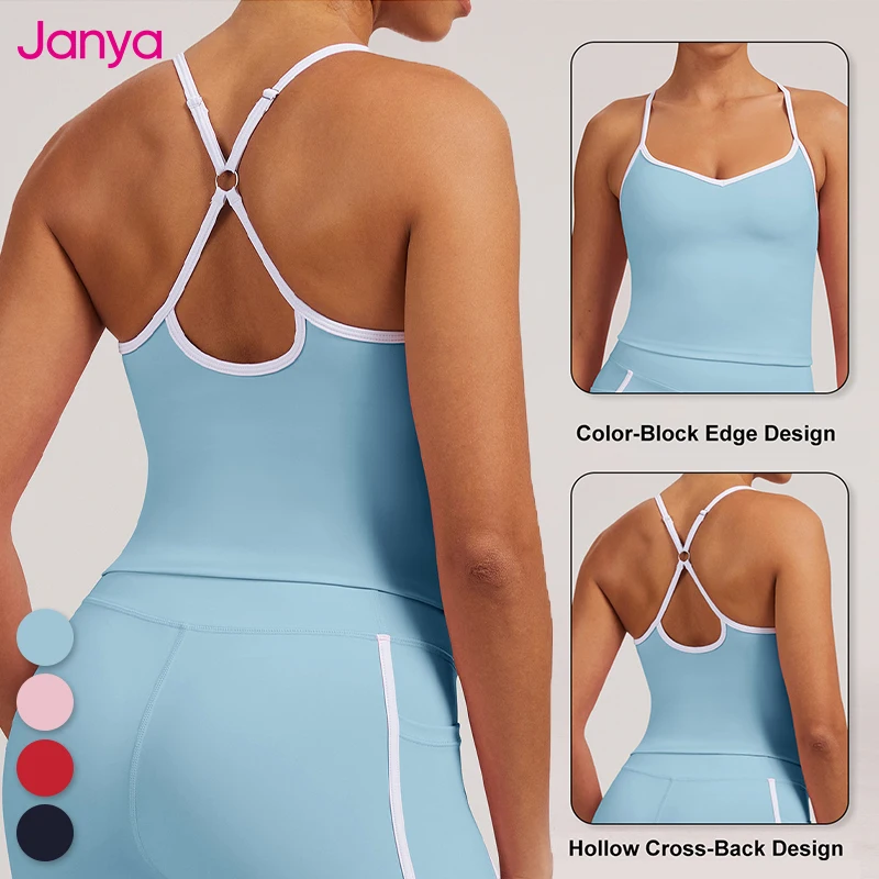 Janya Color Blocking Cross Back Women Yoga Tank Top Removable Pads Quick Dry Breathable Workout Fitness Sports Vest Gym Yoga Top