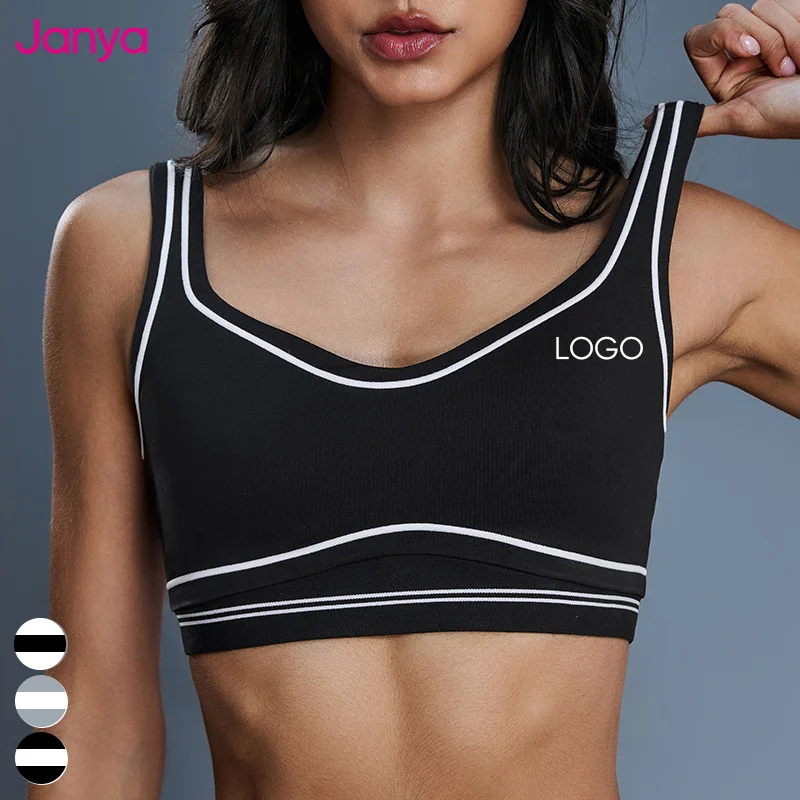 Janya Comfortable Xl Color Blocking V Neck Removable Pads Running Bras Breathable High Support Shockproof Sports Bra for Women