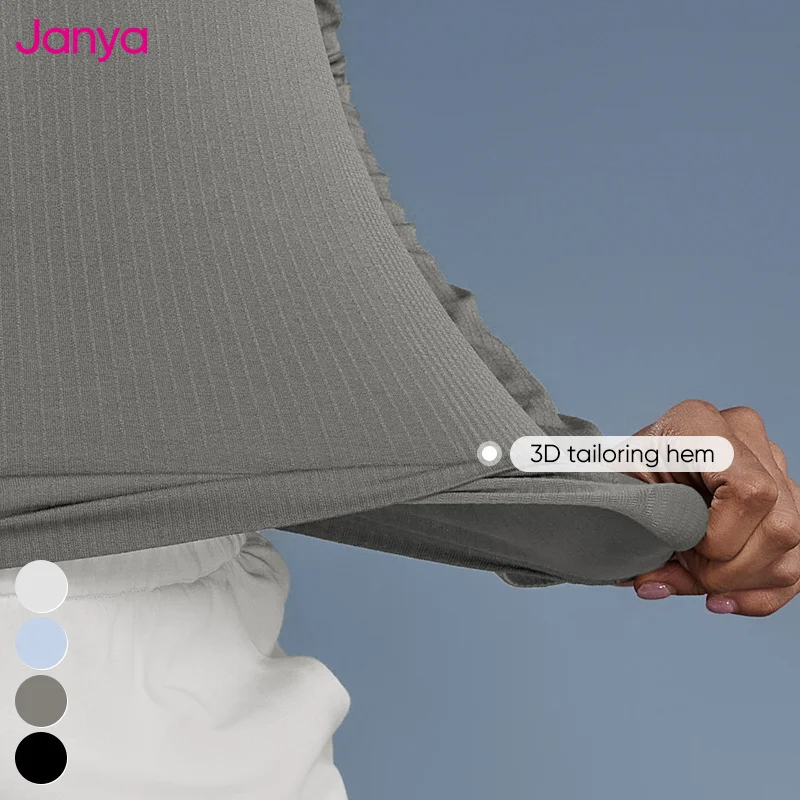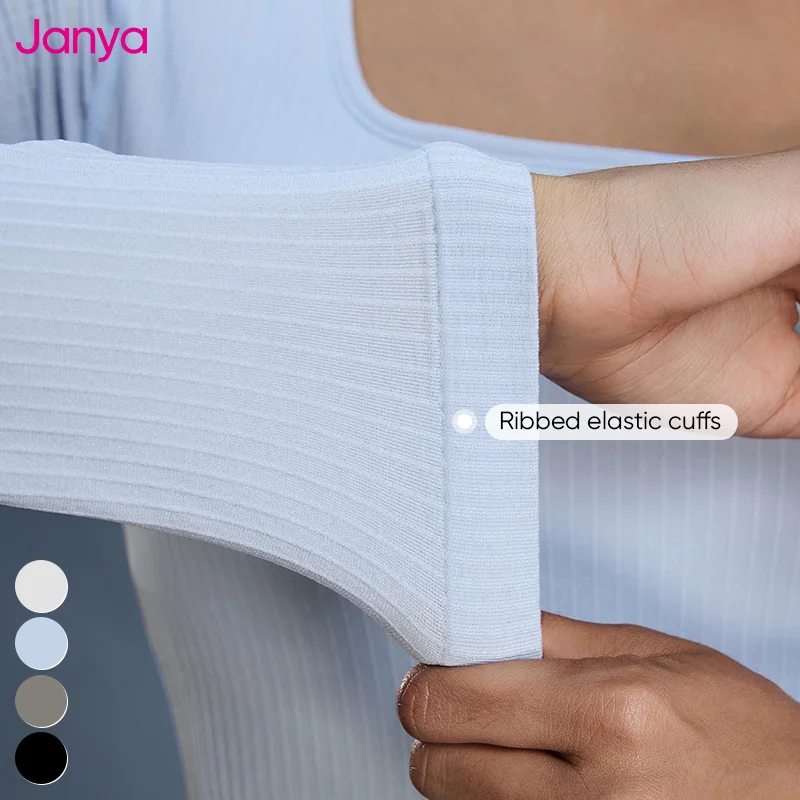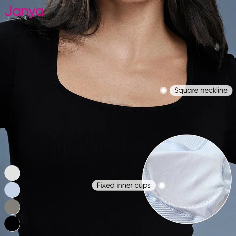 Janya Custom Logo Breathable Sweat-Wicking Gym Fitness T-shirt Seamless Fixed Pads High Elastic Long Sleeve Yoga Tops for Women