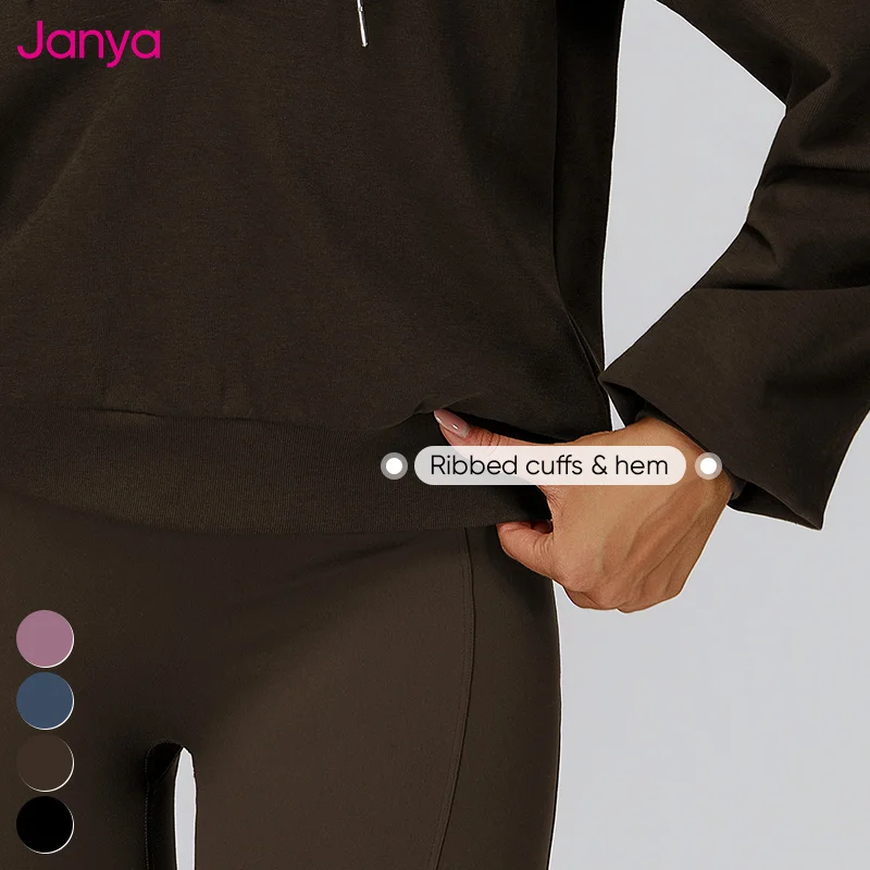 Janya New Loose Sportswear Breathable Comfortable Long Sleeve Pullover Hoody Sweatshirt Women's Drawstring V Neck Sports Jacket