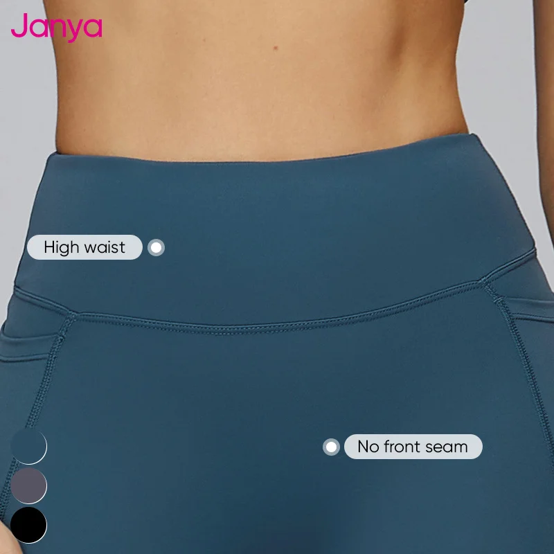Janya Nude Solid Breathable Quick Dry Tummy Control No Front Seam Fitness Sports Leggings Side Pocket High Waist Yoga Leggings