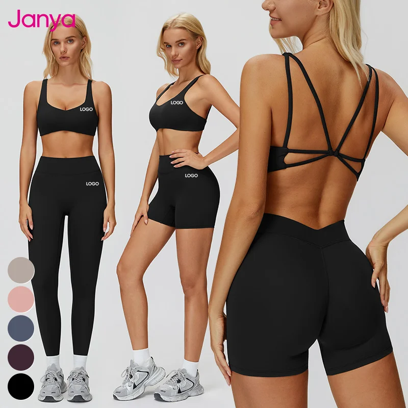 Janya Active Solid Stretch Clothing 2 Piece Suit Women's Brushed Tight Gym Sports Bra Sets Quick Dry Breathable Yoga Fitness Set