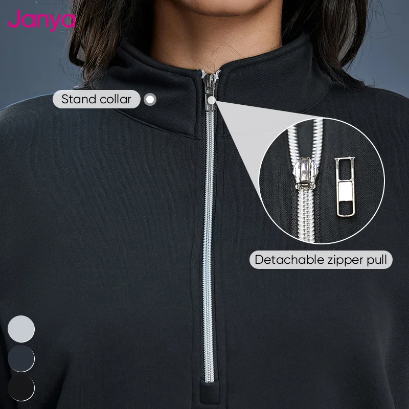 Janya High Quality Casual Loose Thickened Stand Collar Long Sleeve Sweatshirts Women's Half Zipper Pullover Fleece Sweatshirt