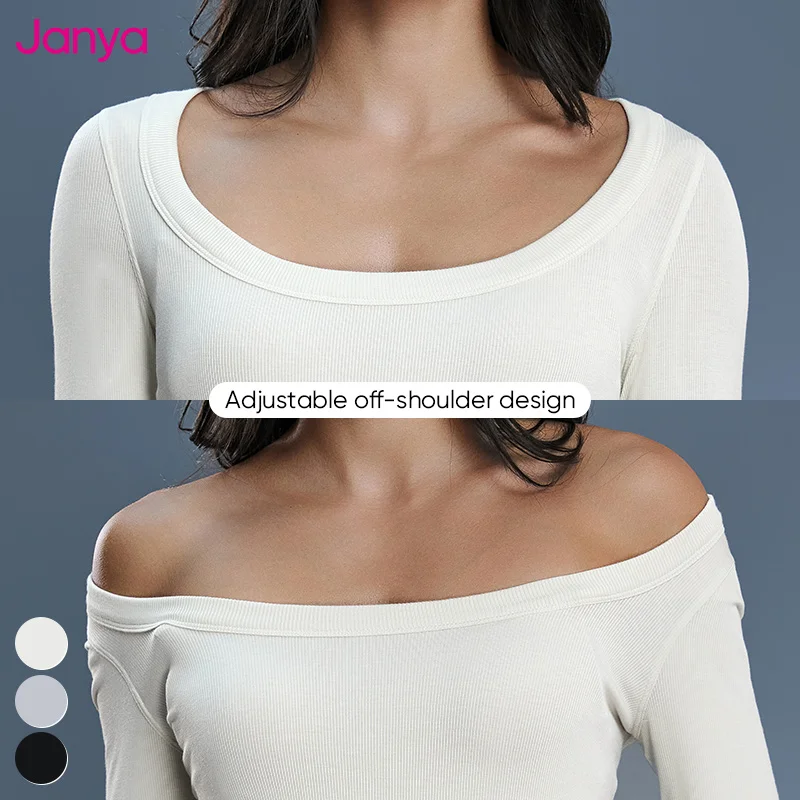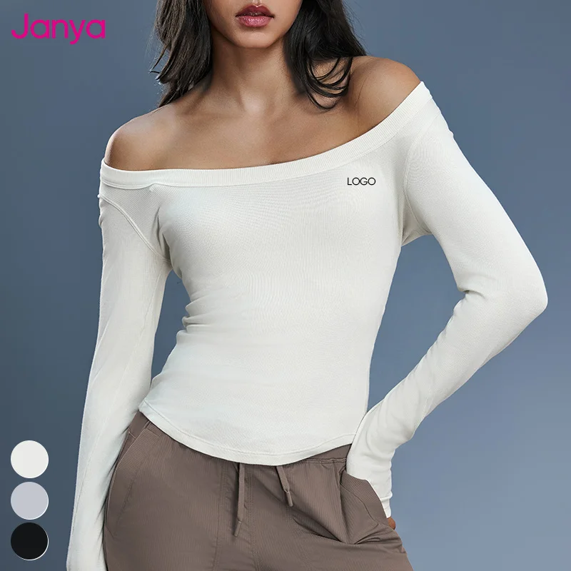 Janya Custom Logo Solid Sportswear Women's Off-the-Shoulder Long Sleeve Slim Fit Modal Fitness Shirts Breathable Yoga Sports Top