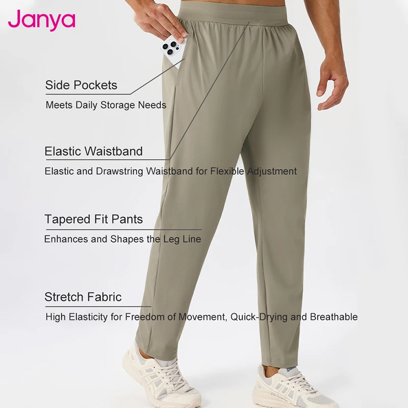 Janya Men's Outdoor Long Pants Quick Dry Stretch Breathable Sports Trousers Lightweight Casual Running Hiking Training Pants