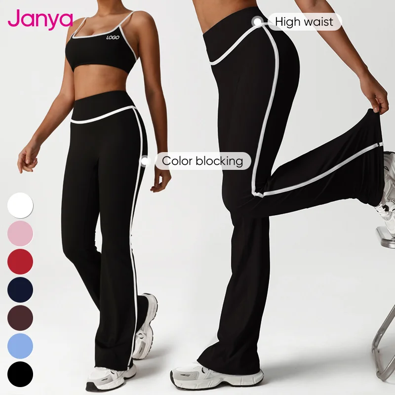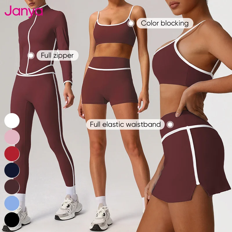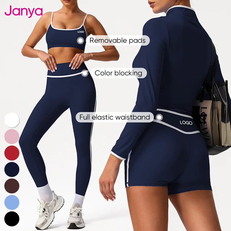 Janya Custom Logo Wholesale Sportswear High Stretch Sports Active Wear Suits Gym Fitness Sets Color Blocking Yoga Sets for Women