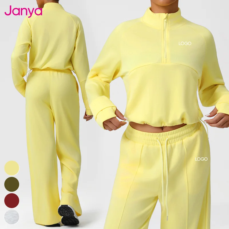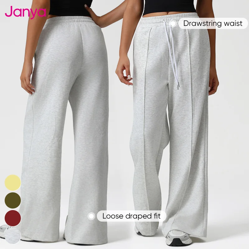 Janya Autumn Warm Breathable Casual Sweatsuit Drawstring Loose Fit Wide Leg Sweatpants Two-Piece Set Fitness Yoga Sets for Women