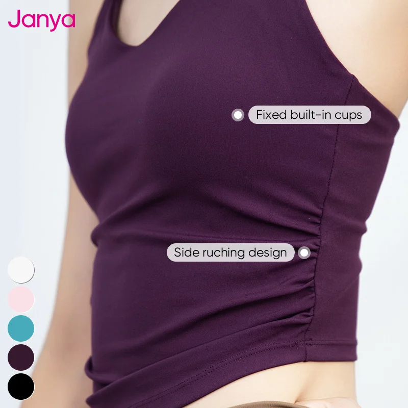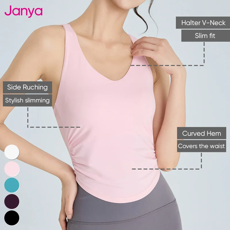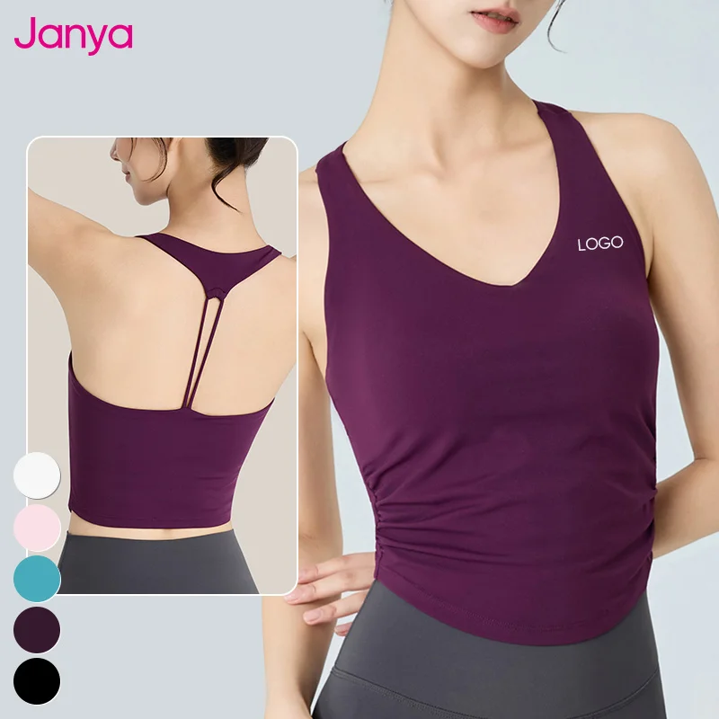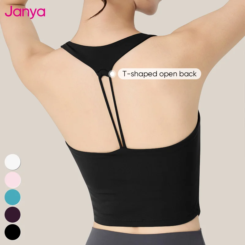 Janya Wholesale Lightweight V Neck Sleeveless Sports Tops Halter Backless Running Vest Fixed Pads Push Workout Yoga Tank Top