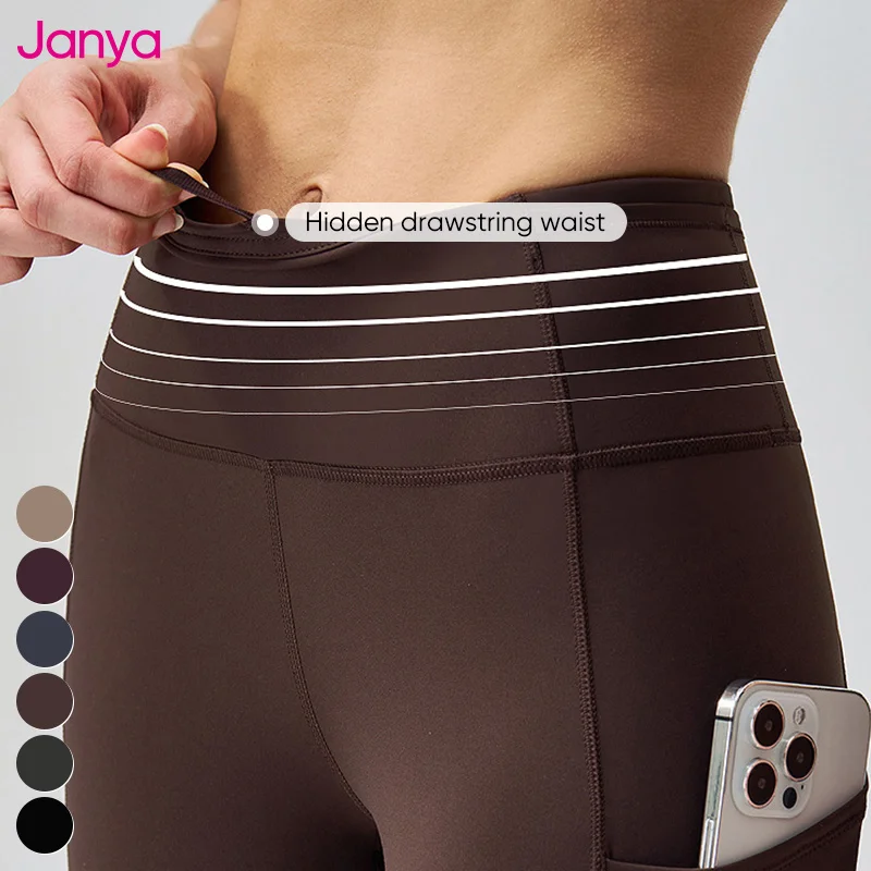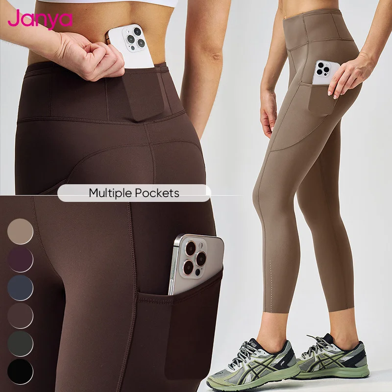 Janya 2026 Multi-Pockets High Support Peach Hip Gym Fitness High Elastic Waist Yoga Leggings for Women with Reflective Stripes