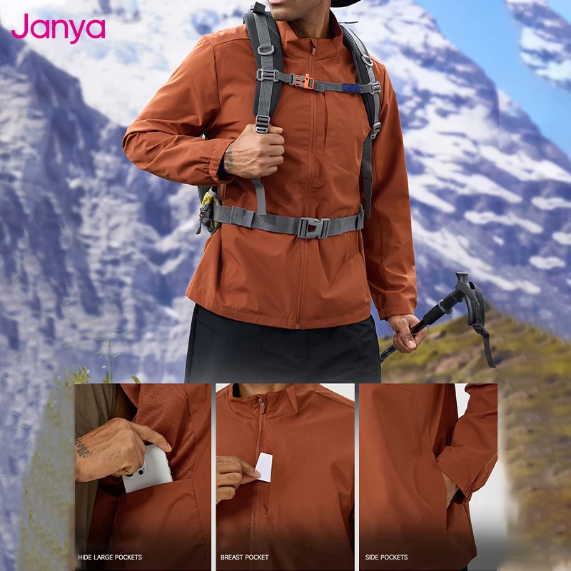 Janya Men's Outdoor Waterproof Windbreaker Blouson Jacket Lightweight Breathable Casual Hiking Camping Trekking Sports Coat