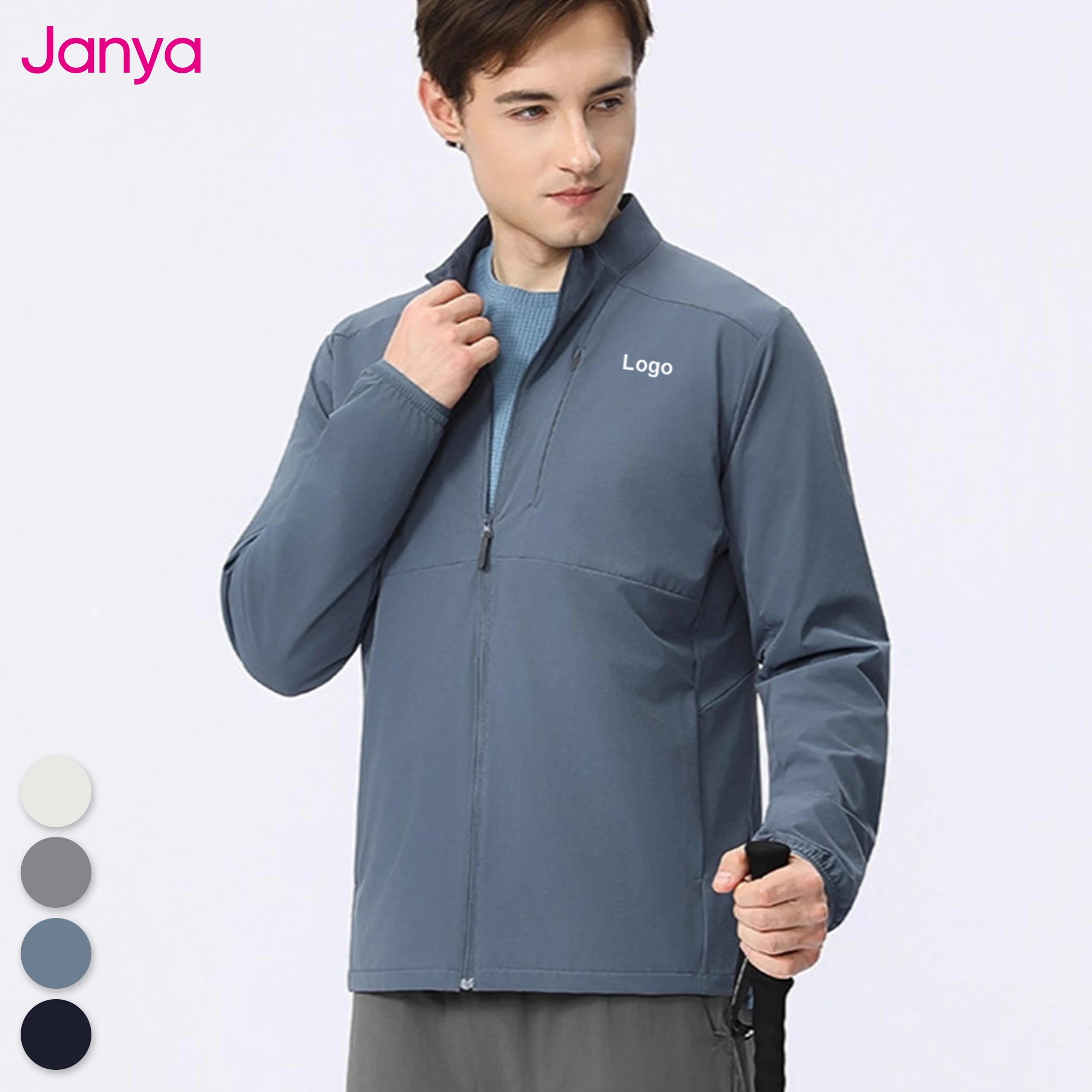 Janya Casual Men's Stand-Up Collar Jacket 7A Antibacterial Water-resistant Fabric Breathable Moisture-Wicking Knitted Jackets