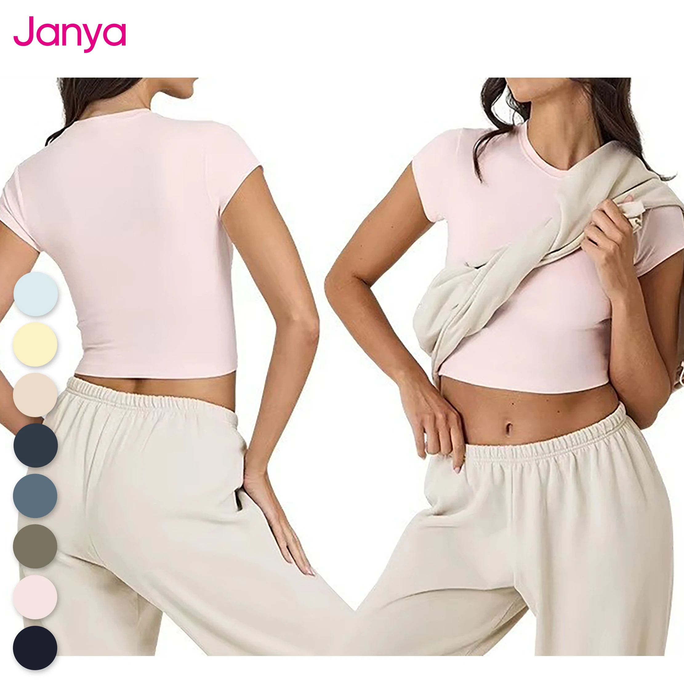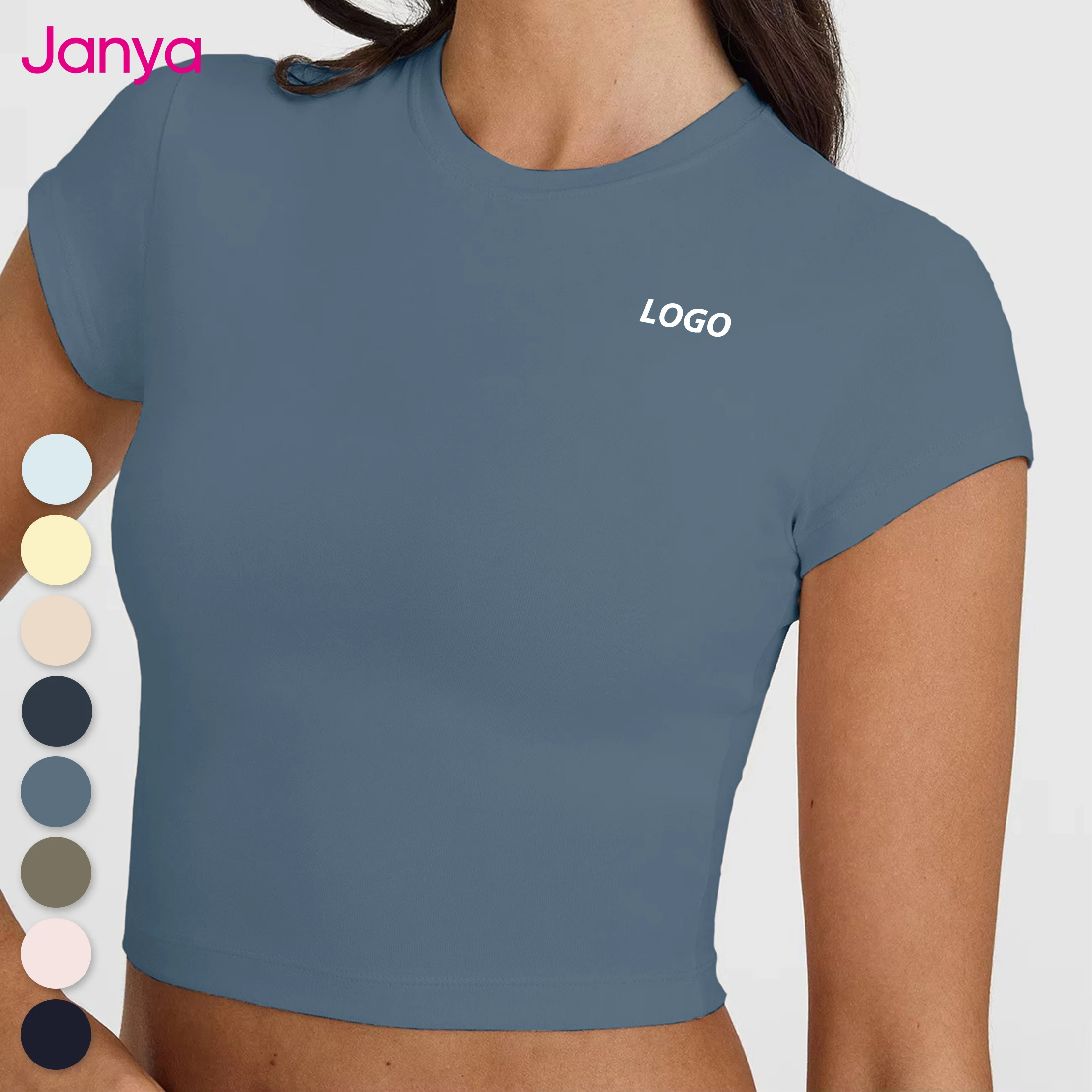 Janya Custom Women Clothing Yoga Crop Top Short Sleeve Tight Fit Naked Feeling Gym Fitness Sports T-Shirt Slim Workout Tee Tops