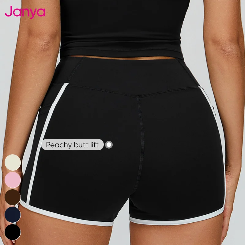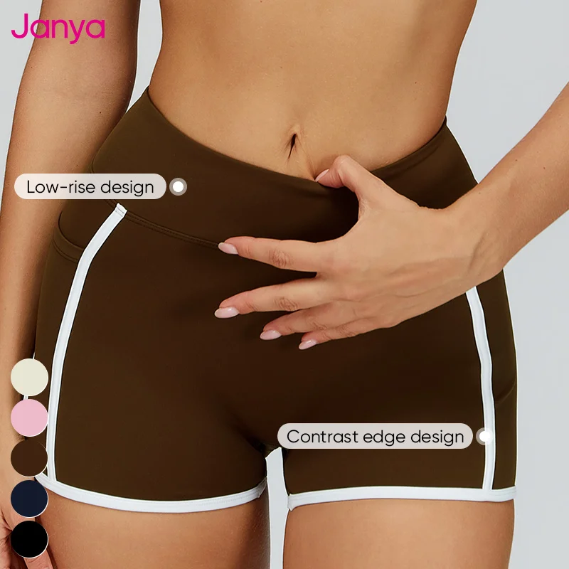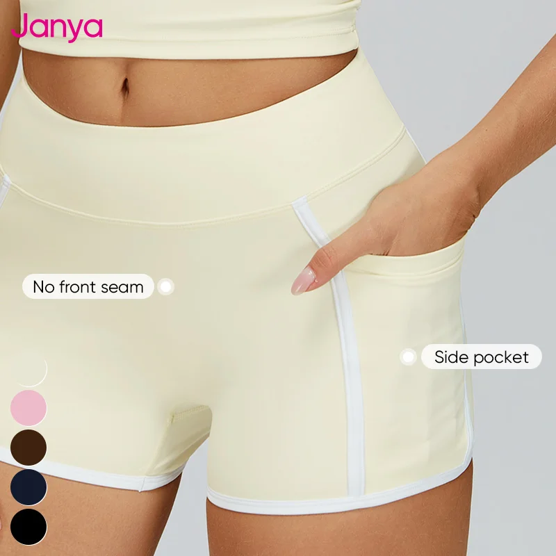 Janya Hot Selling Color Blocking Breathable Gym Clothing Side Pockets Workout Fitness Hot Shorts Low-rise Sports Yoga Shorts