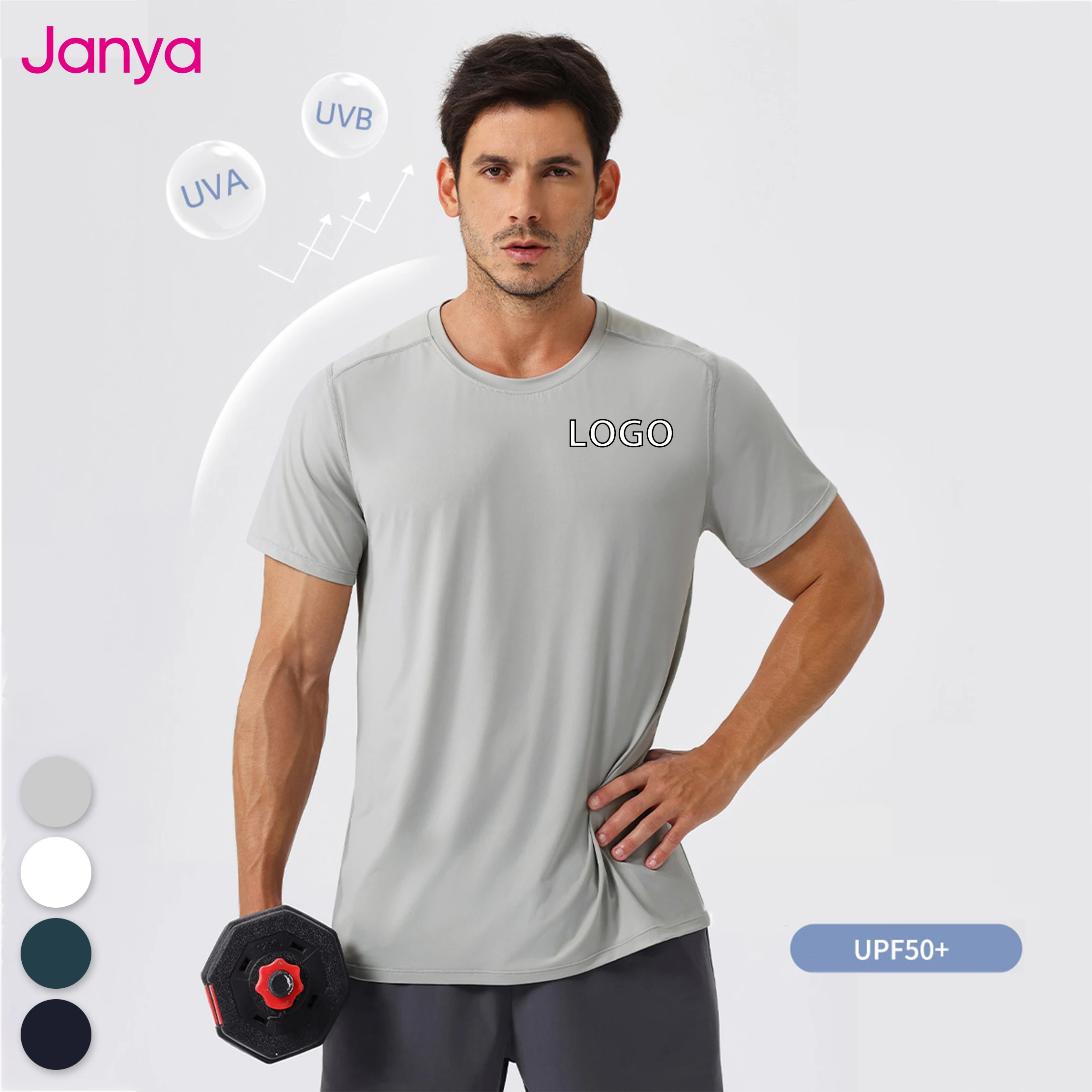 Janya Custom Men's Breathable T-shirts Ice Silk Fabric Quick Dry Outdoor Training Fitness Short Sleeve Running Active Tops