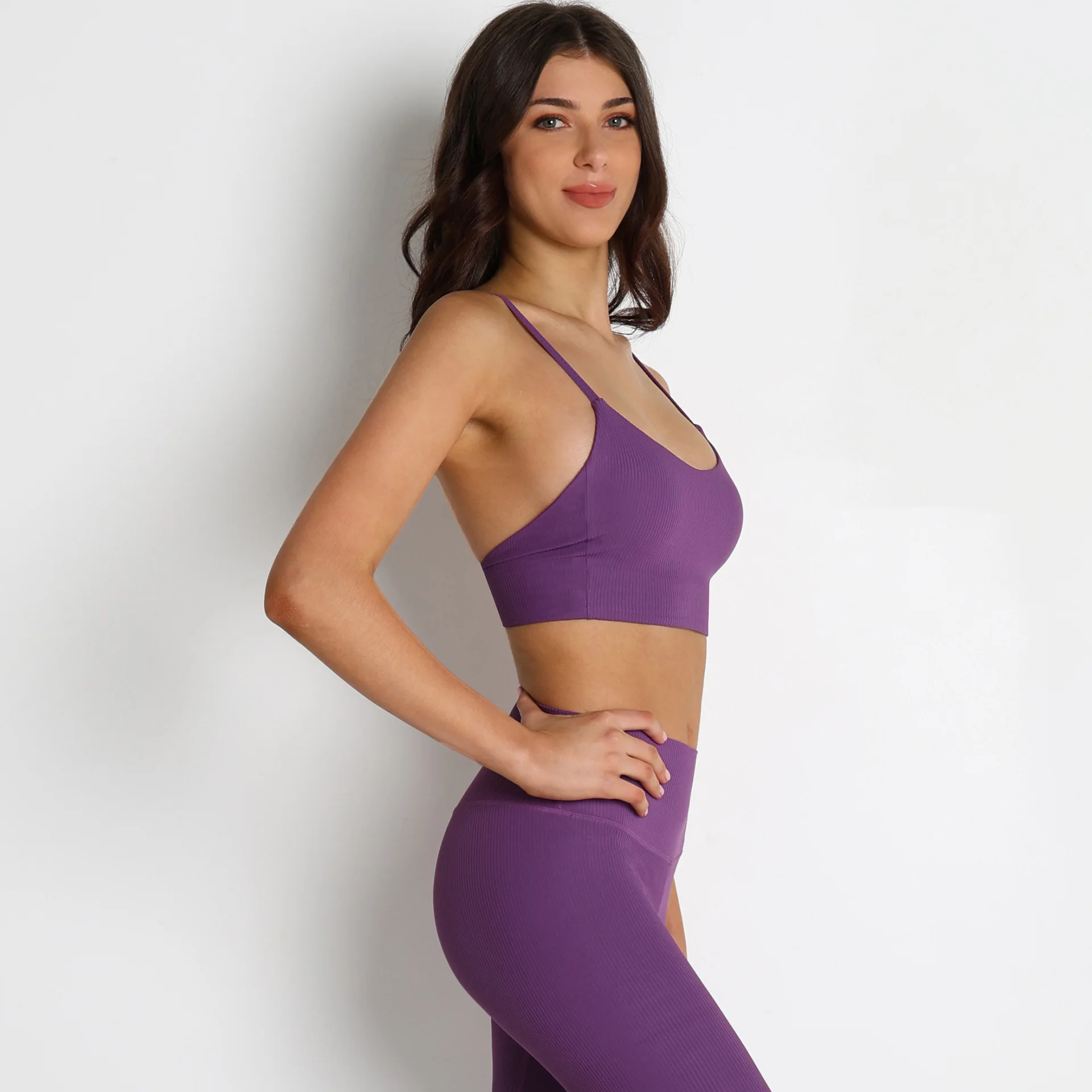 YISHENHON OEM/ODM Custom Workout Halter Scrunch Sports Bra Women Girls Stretchy Compression Quick Dry Padded Sexy Pants Polybag
