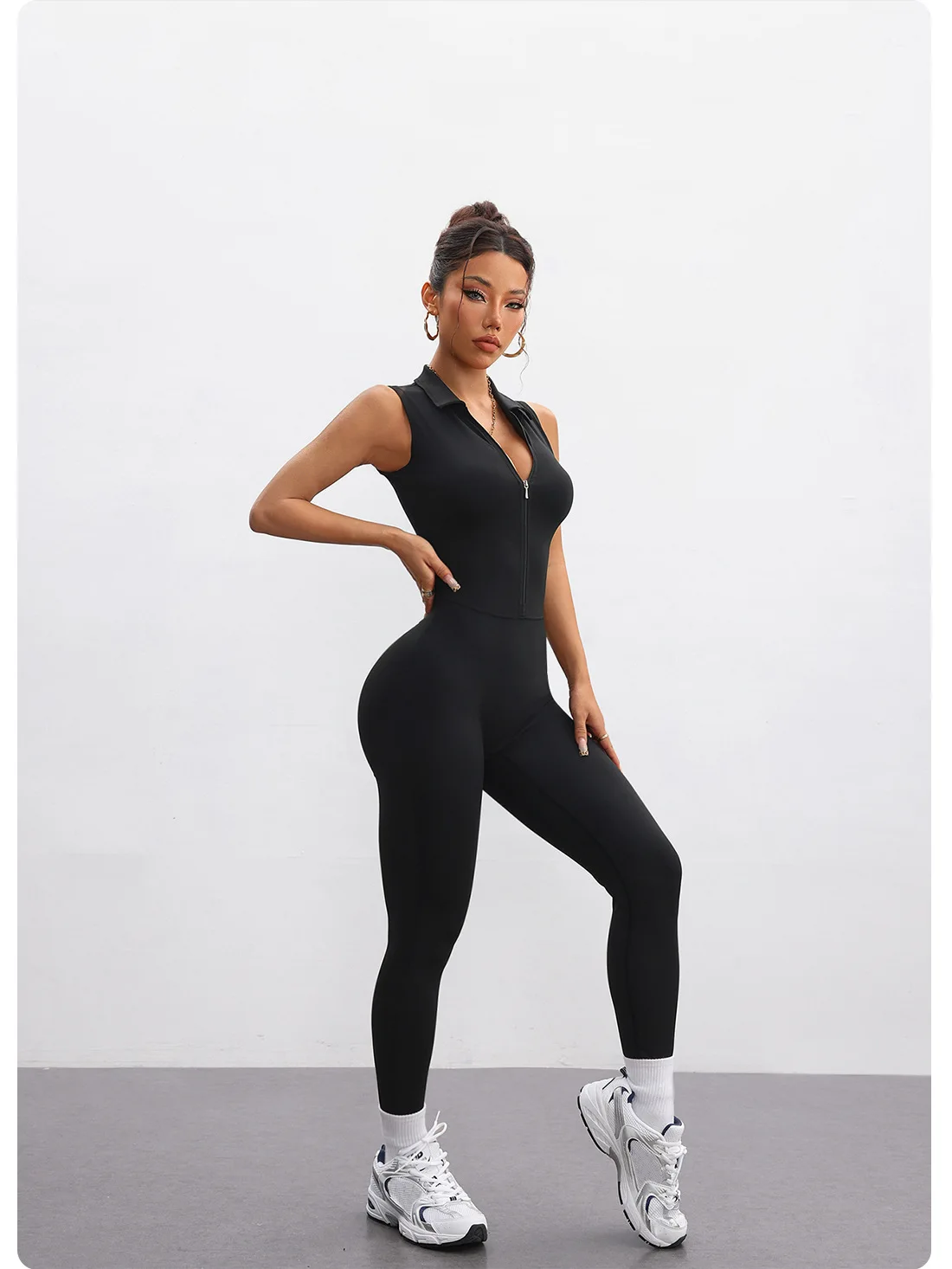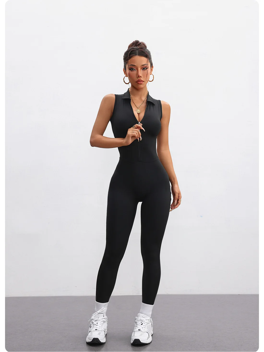 Custom Logo Women's Half-zip Mesh Bodysuit Sleeveless Stretchy Gym Fitness One Piece Yoga Jumpsuit