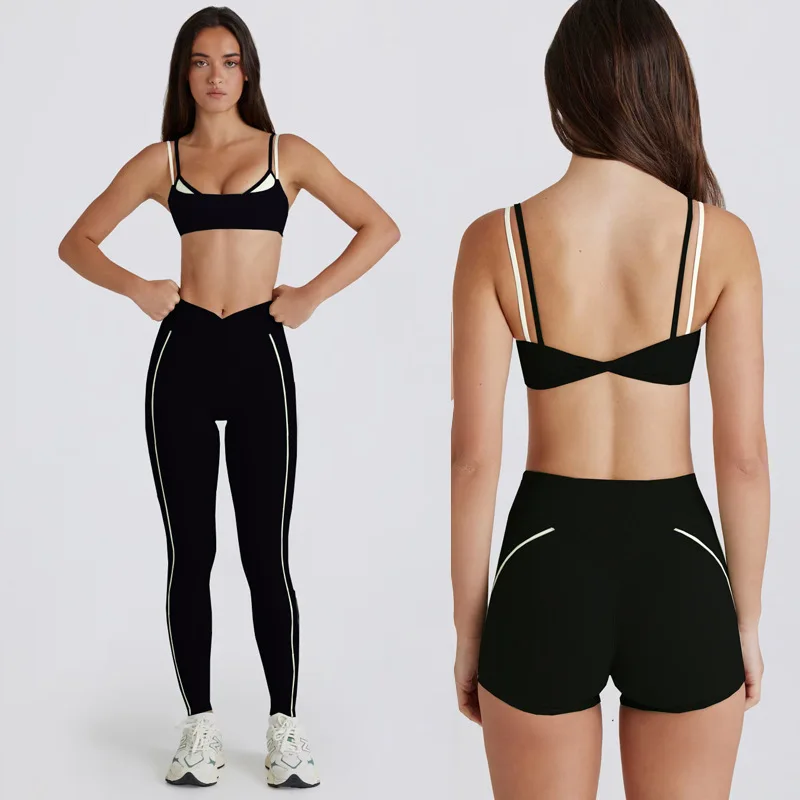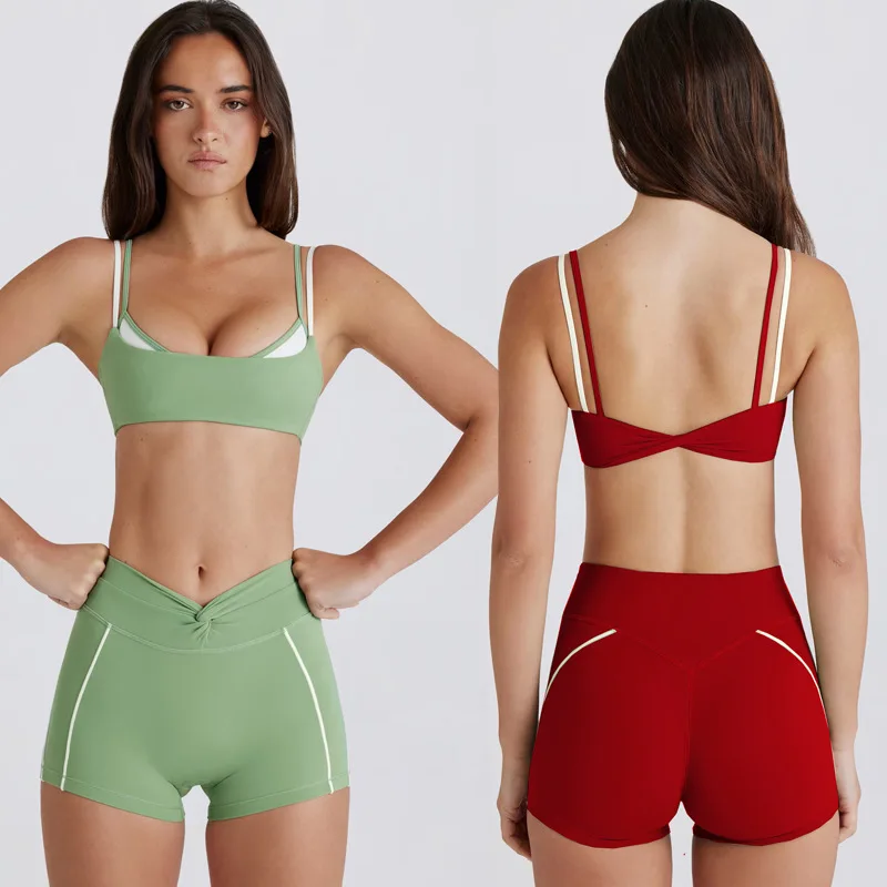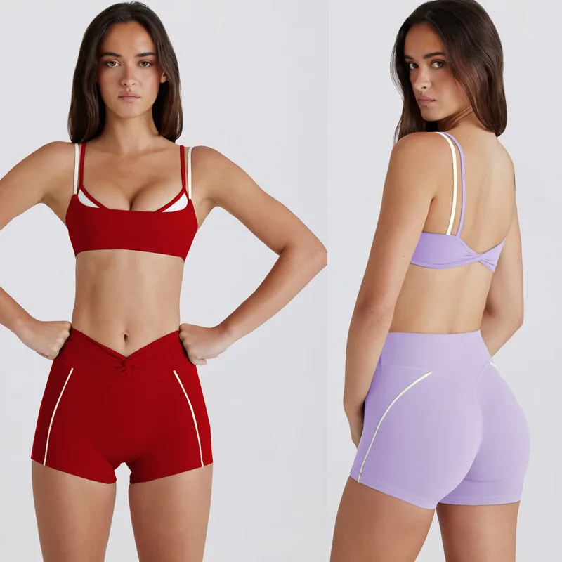 Custom Logo Sports Bra Contrast Color High Waist Shorts Yoga Fitness Outdoor Workout Gym Fitness Sets for Women