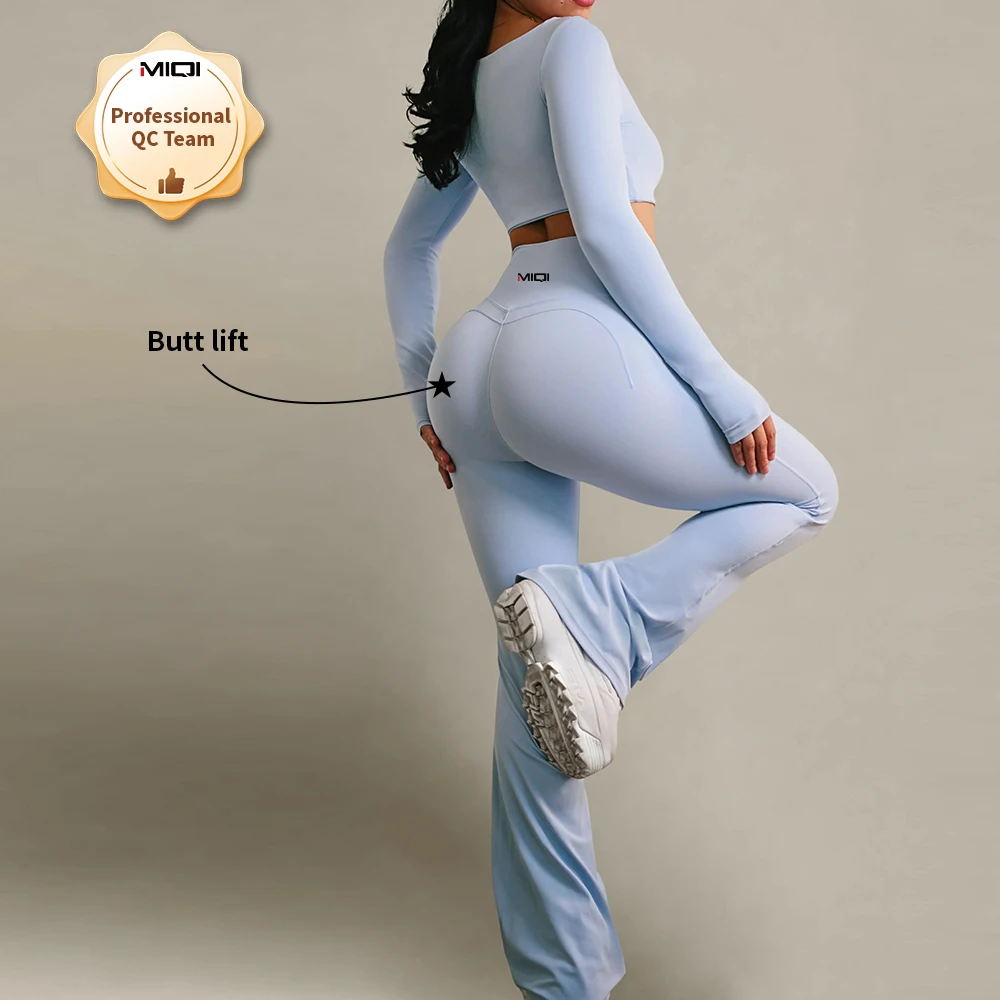 OEM Custom Sample Women High Quality 2-Piece Yoga Fitness Leggings Long Sleeve Sports Wear Top Bra With Yoga Sets