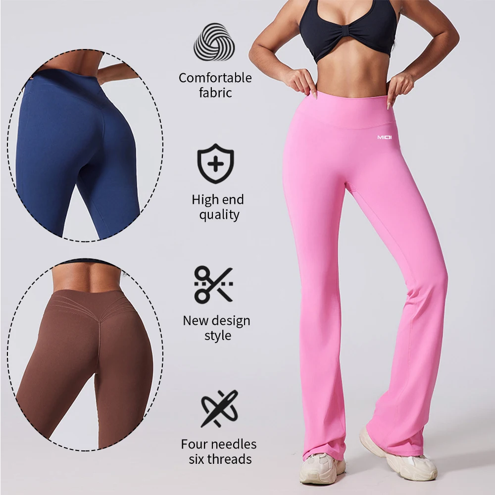 YISHENHON High Quality Gym Yoga Flare Leggings Hot Selling High-Waisted Wide Leg Pants for Women Solid Casual Sport Running