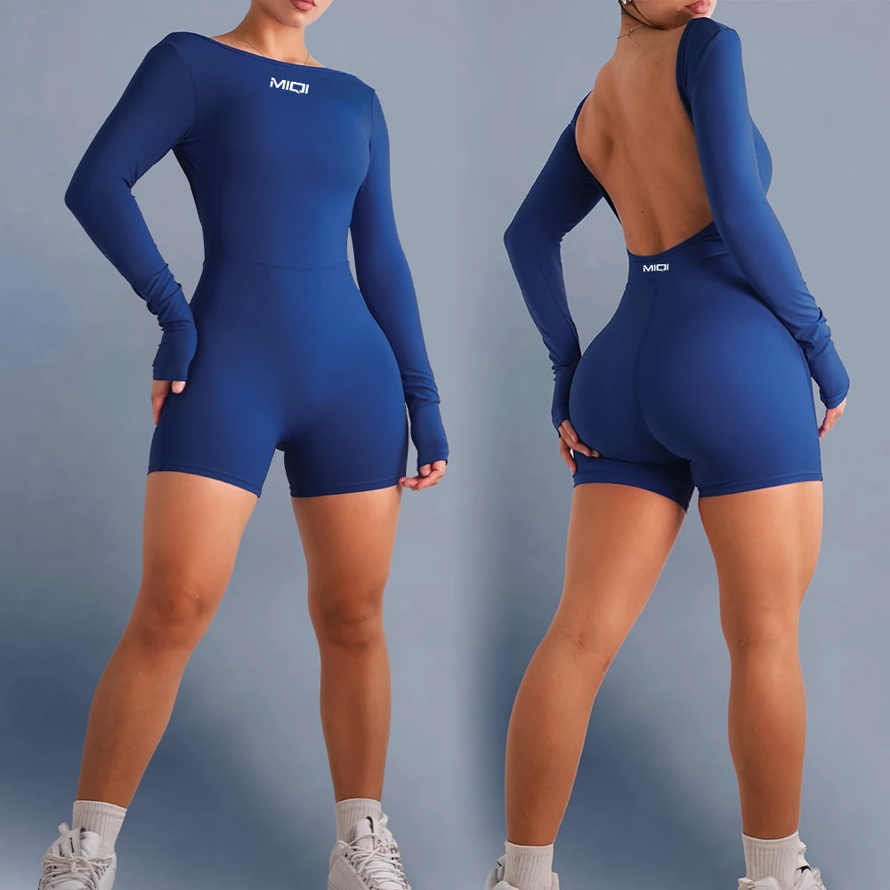 MIQI Custom Logo Butt Lifting Bodysuit Clothes Backless Quick Dry Workout Shorts Bodysuits Fitness Jumpsuits for Tall Girl
