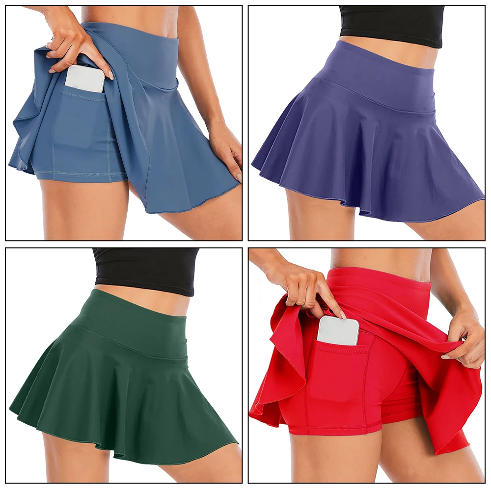 High Waisted Light Weight Workout Wear Exercises Outwear Shorts Skirts 2Pcs Fitness Running Tennis Skirts with Pockets