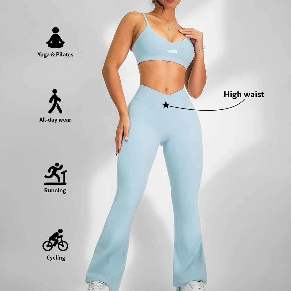 YISHENHON High Quality Gym Yoga Flare Leggings Hot Selling High-Waisted Wide Leg Pants for Women Solid Casual Sport Running