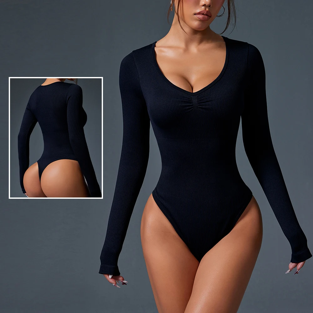 Seamless Sexy Butt Jumpsuit Chest Ruffle Wide Neck Jumpsuit Triangle Shape Suit Black Yoga Suit for Tall Girl