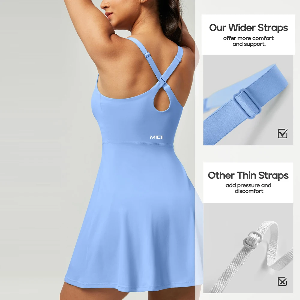 YISHENHON Women's Outdoor Running Tennis Skirt Anti-slip A-Line Skirt with Stand Collar and One Piece Dress Cloud Sense Design