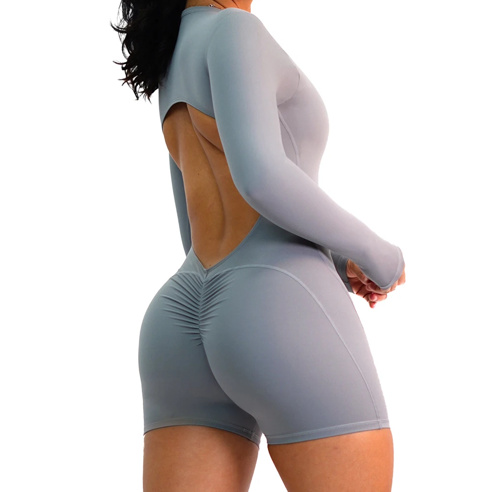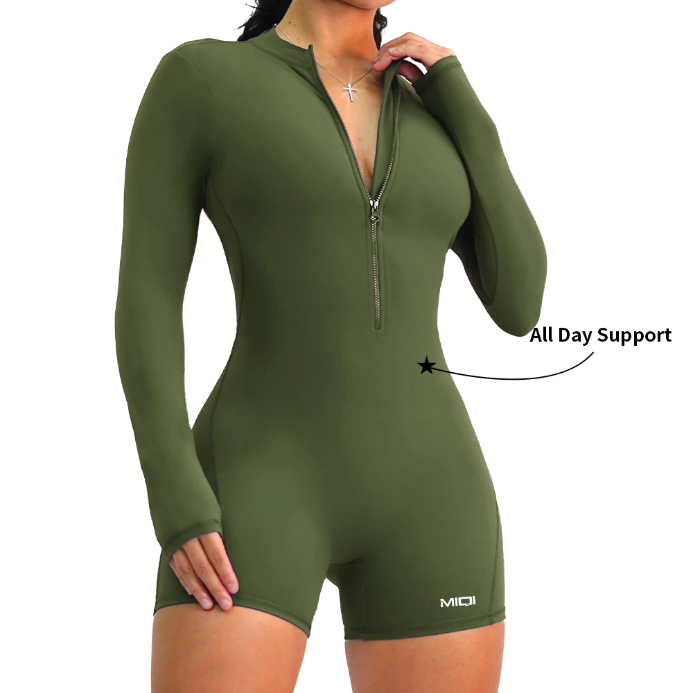 MIQI Custom Logo Butt Lifting Long Sleeve Bodysuit Quick Dry Workout Shorts Bodysuits Fitness Jumpsuits for Women