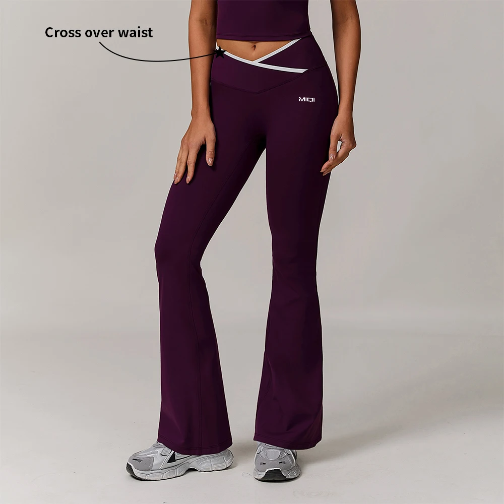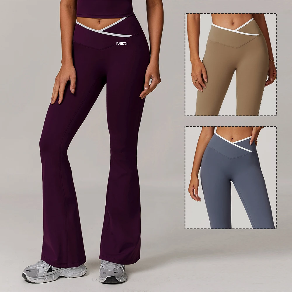 YISHENHON High Quality Gym Yoga Flare Leggings Hot Selling High-Waisted Wide Leg Pants for Women Solid Casual Sport Running