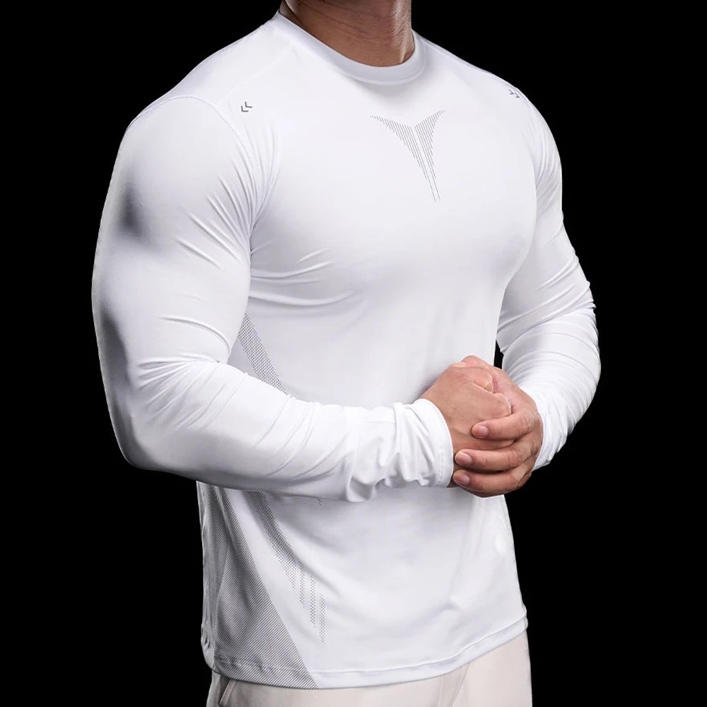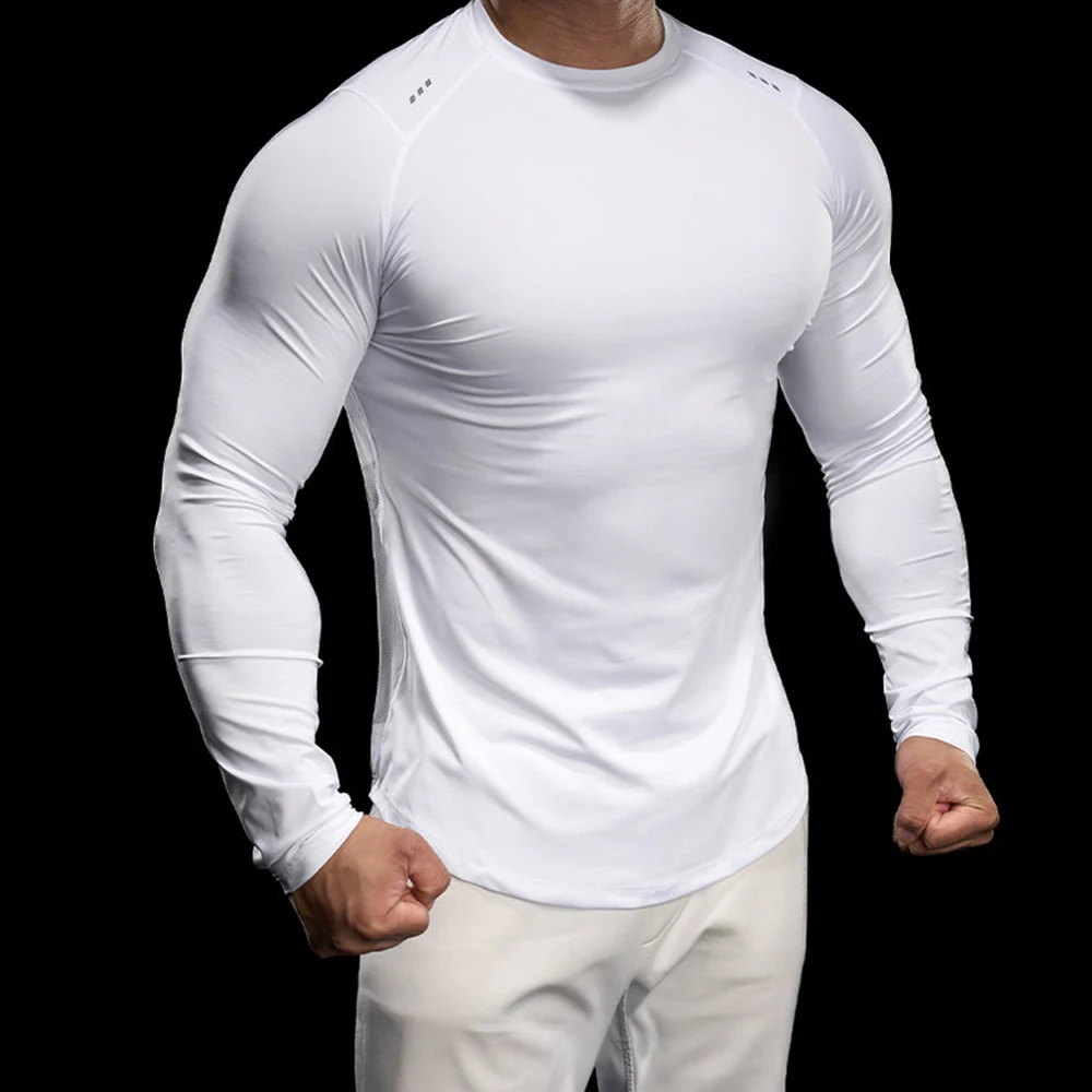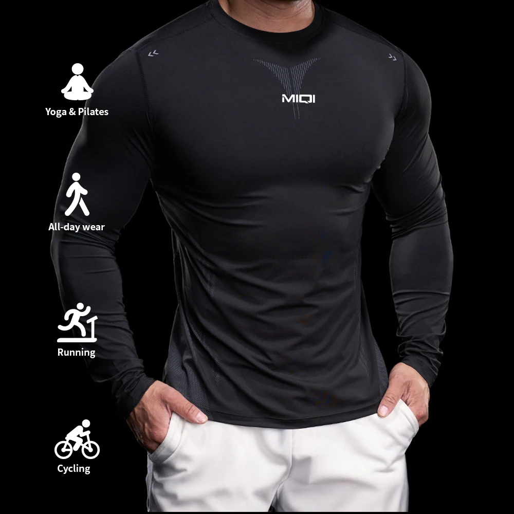 MIQI Quick Dry Fitness Longsleeve Breathable Top Men T Shirts Compressed Nylon O Neck Gym Shirt for Men