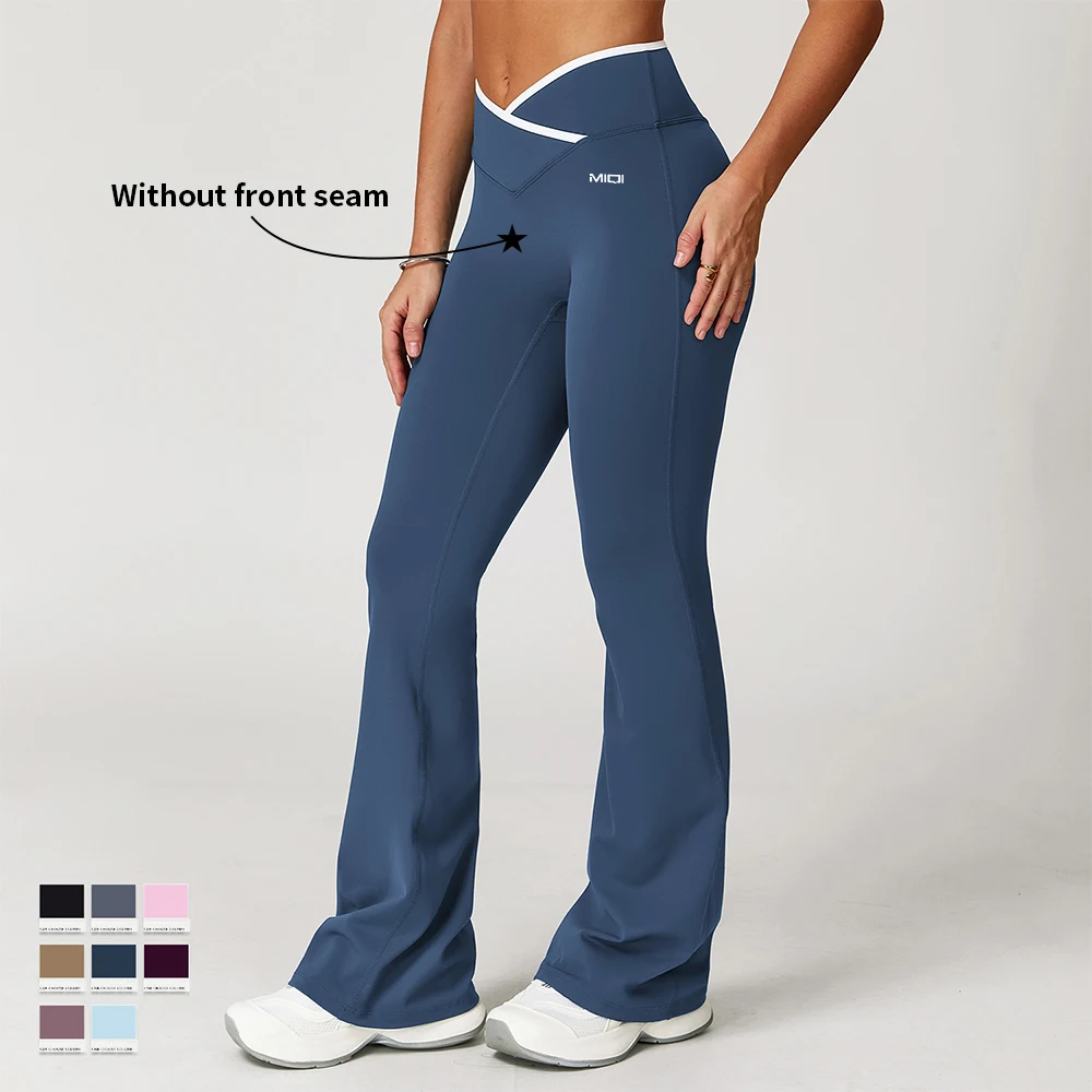 YISHENHON High Quality Gym Yoga Flare Leggings Hot Selling High-Waisted Wide Leg Pants for Women Solid Casual Sport Running