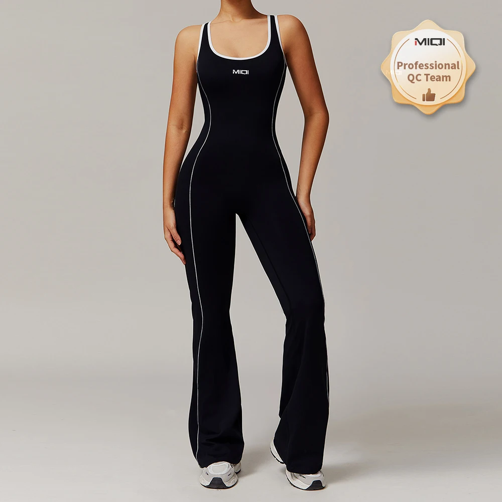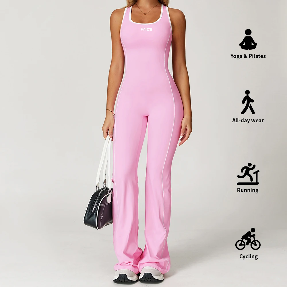 Custom Size Contrast Gym Fitness Set Active Wear One Piece Women Bodysuits Backless Yoga Jumpsuits Apparel