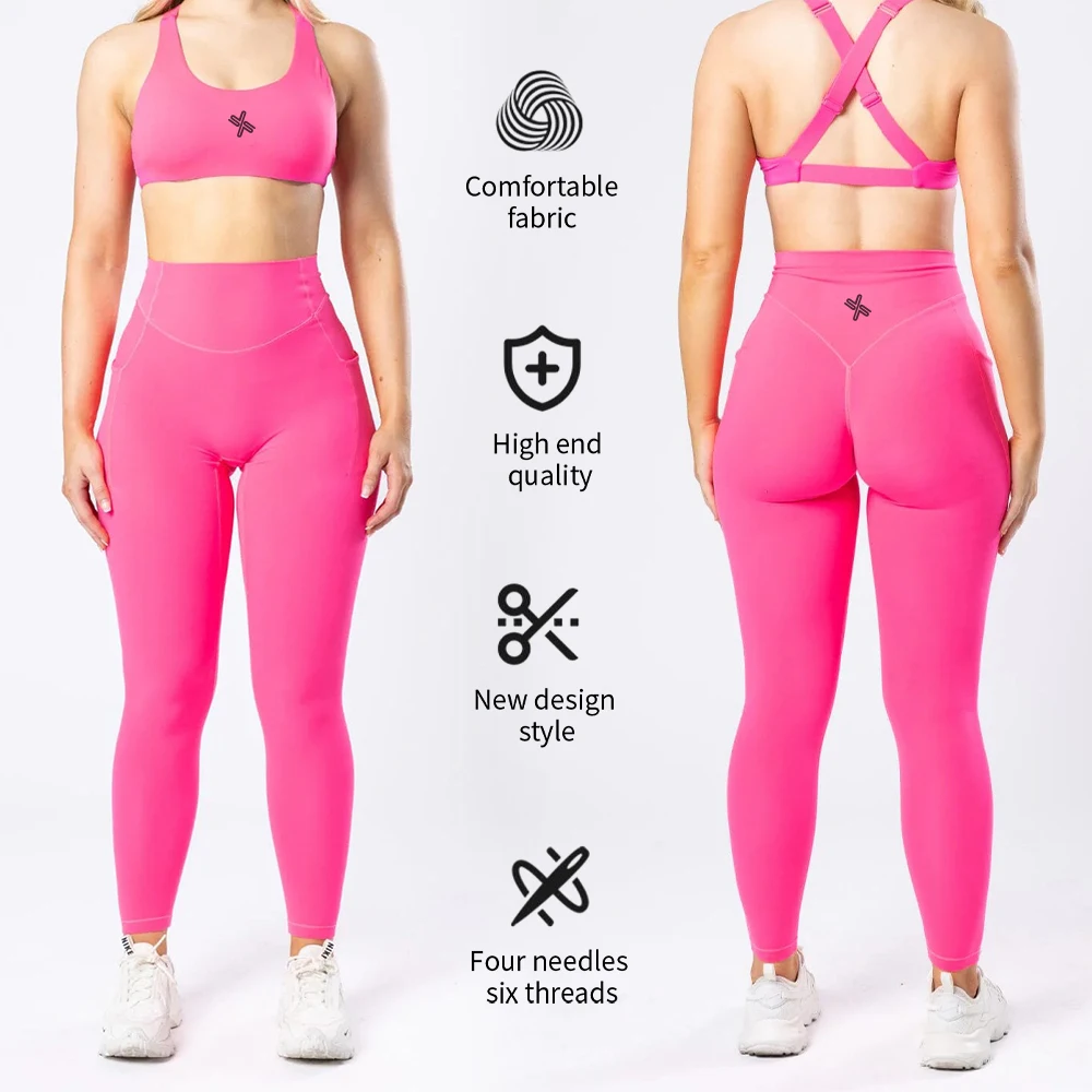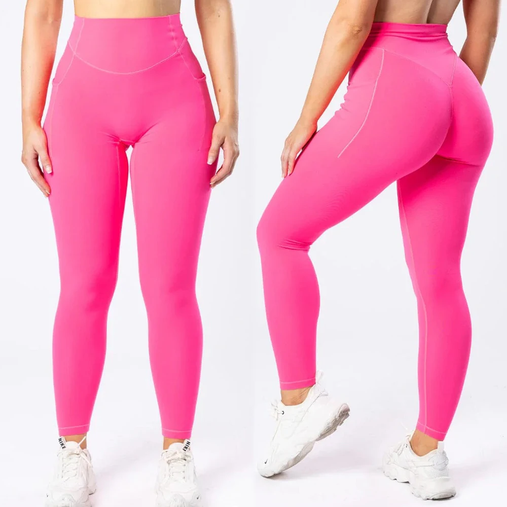 YISHENHON Custom Butt Lift Yoga Leggings for Women High Waist Sport Pants with Pockets Running Fitness Workout Gym Activewear
